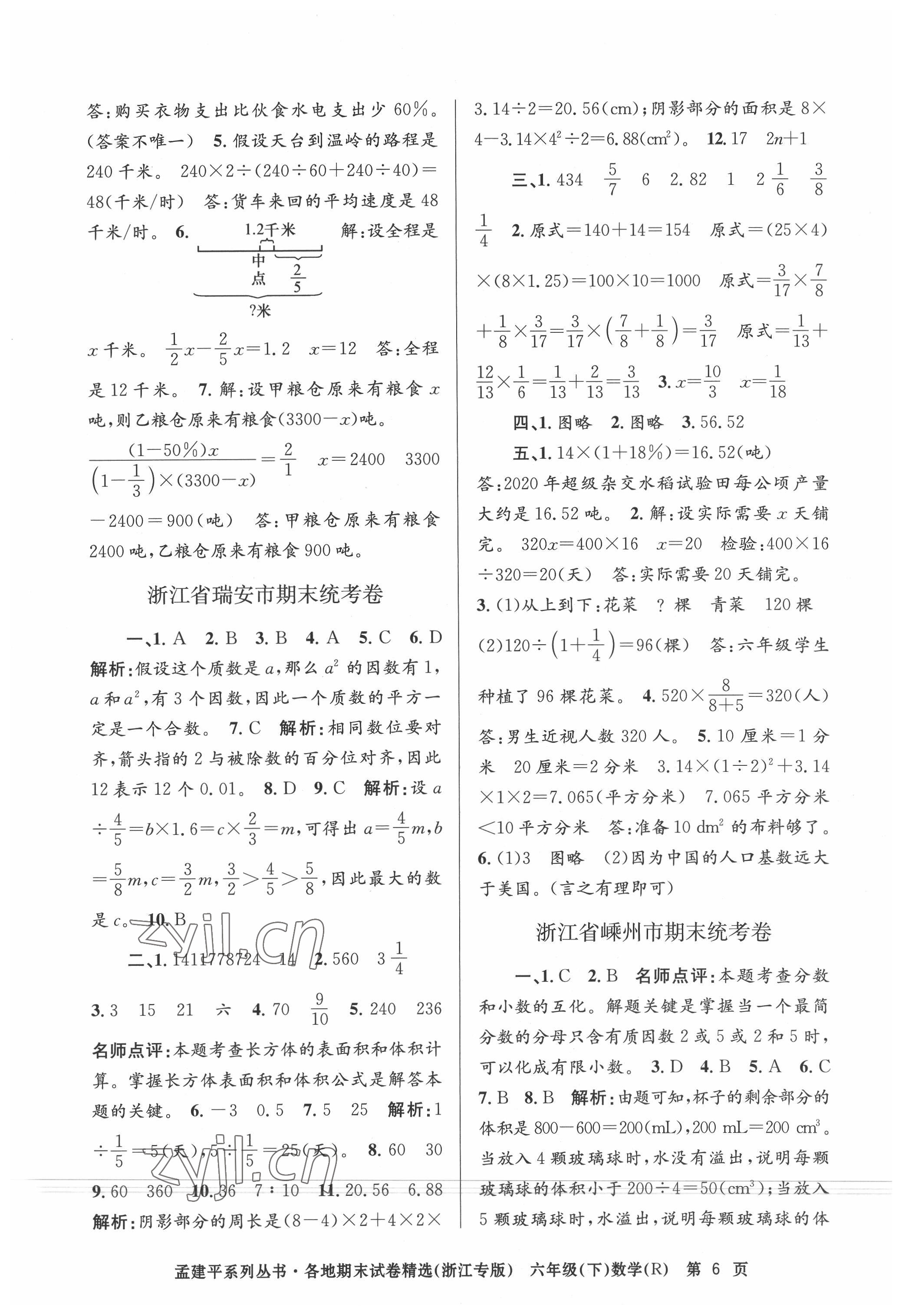 注:目前有些书本章节名称可能整理的还不是很完善,但都是按照顺序排列的,请同学们按照顺序仔细查找。练习册 2022年孟建平各地期末试卷精选六年级数学下册人教版台州专版 答案主要是用来给同学们做完题方便对答案用的,请勿直接抄袭。
