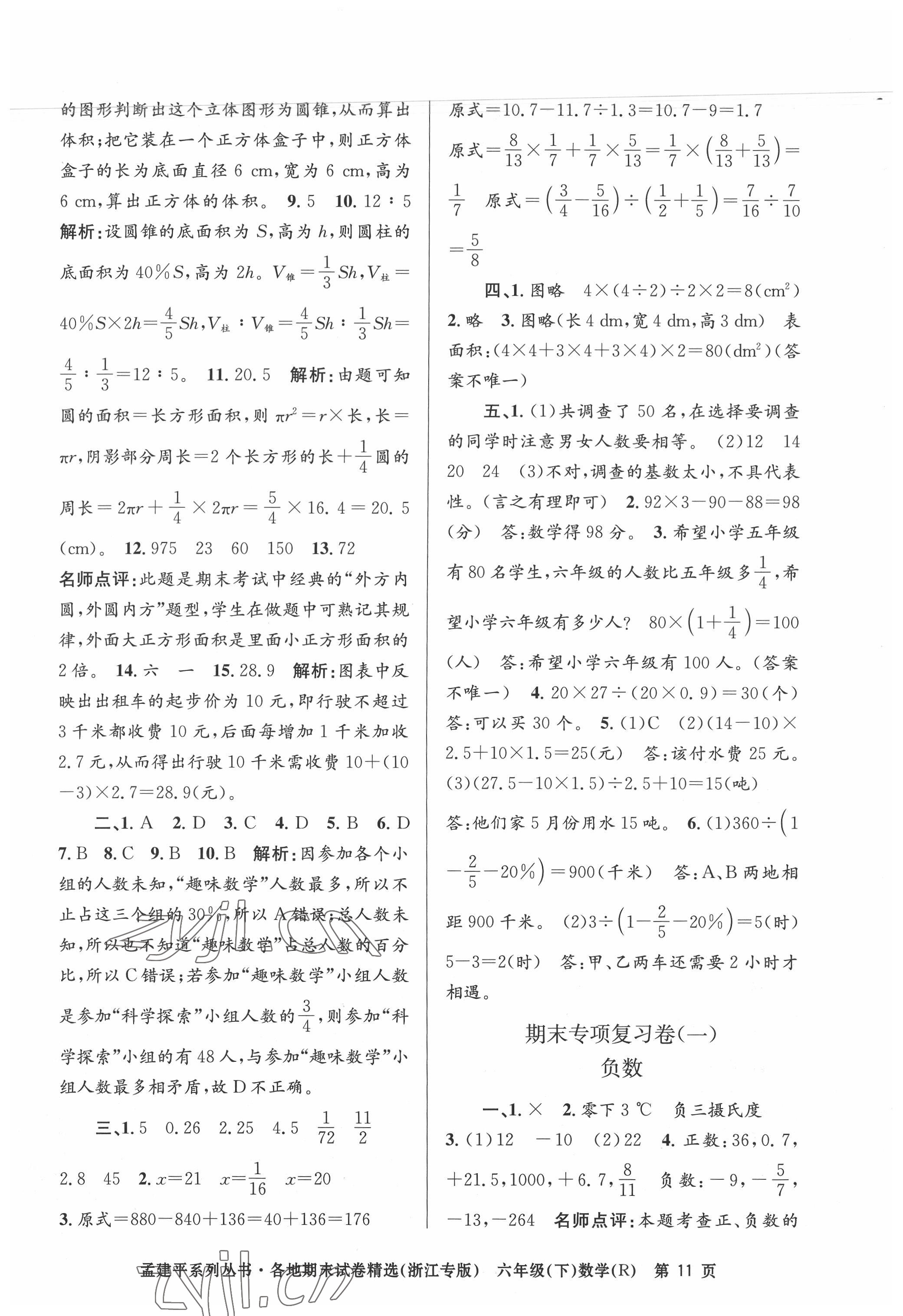注:目前有些书本章节名称可能整理的还不是很完善,但都是按照顺序排列的,请同学们按照顺序仔细查找。练习册 2022年孟建平各地期末试卷精选六年级数学下册人教版台州专版 答案主要是用来给同学们做完题方便对答案用的,请勿直接抄袭。