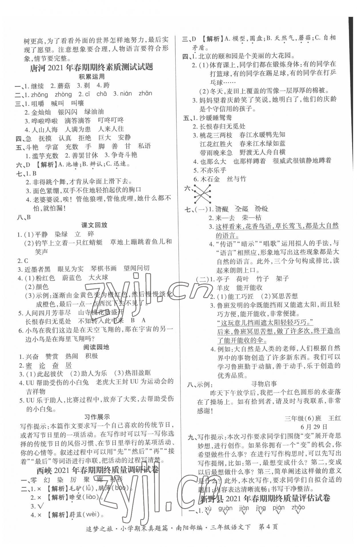《2022年追梦之旅小学期末真题篇三年级语文下册人教版南阳专版》