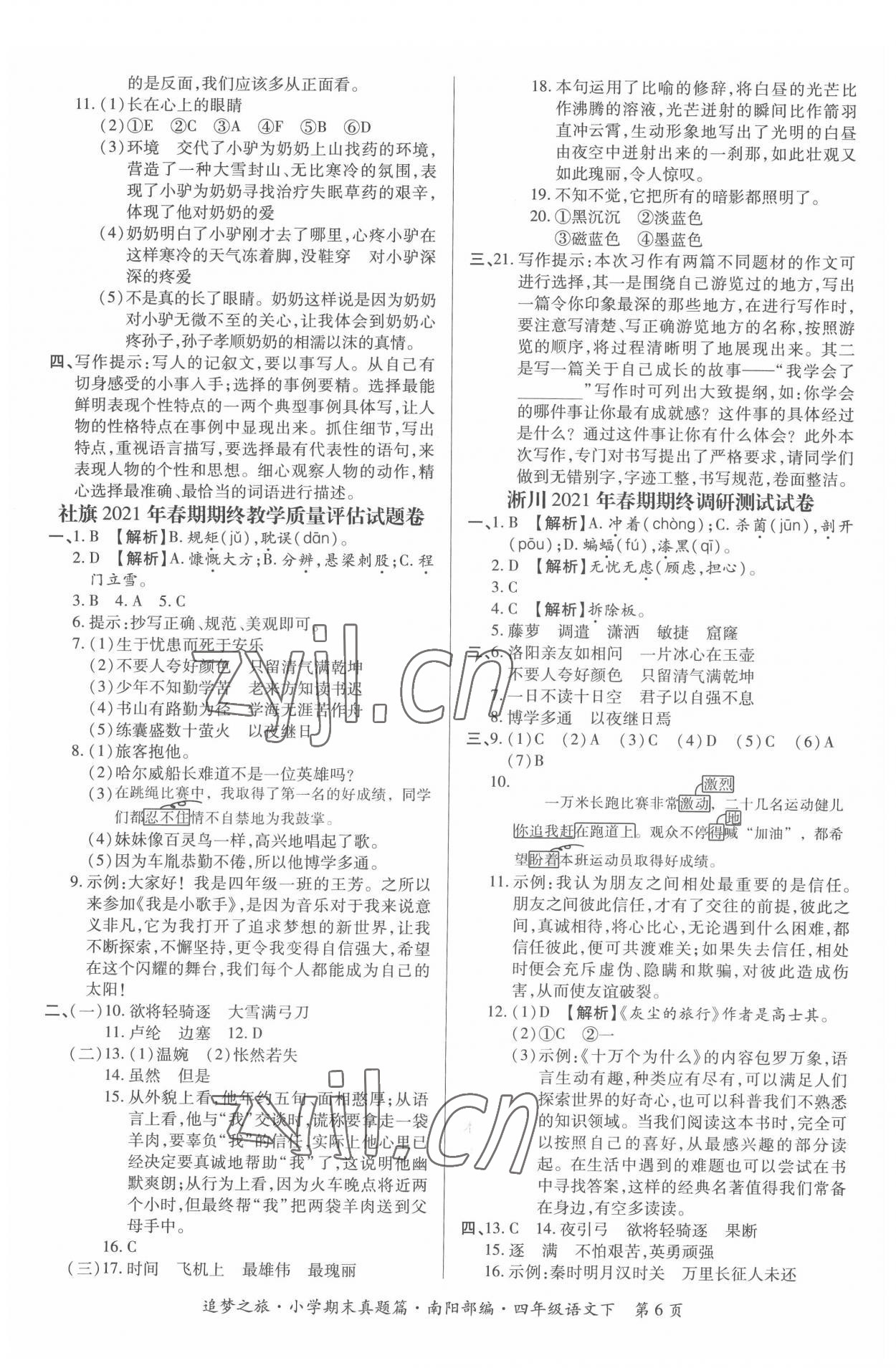 2022年追梦之旅小学期末真题篇四年级语文下册人教版南阳专版