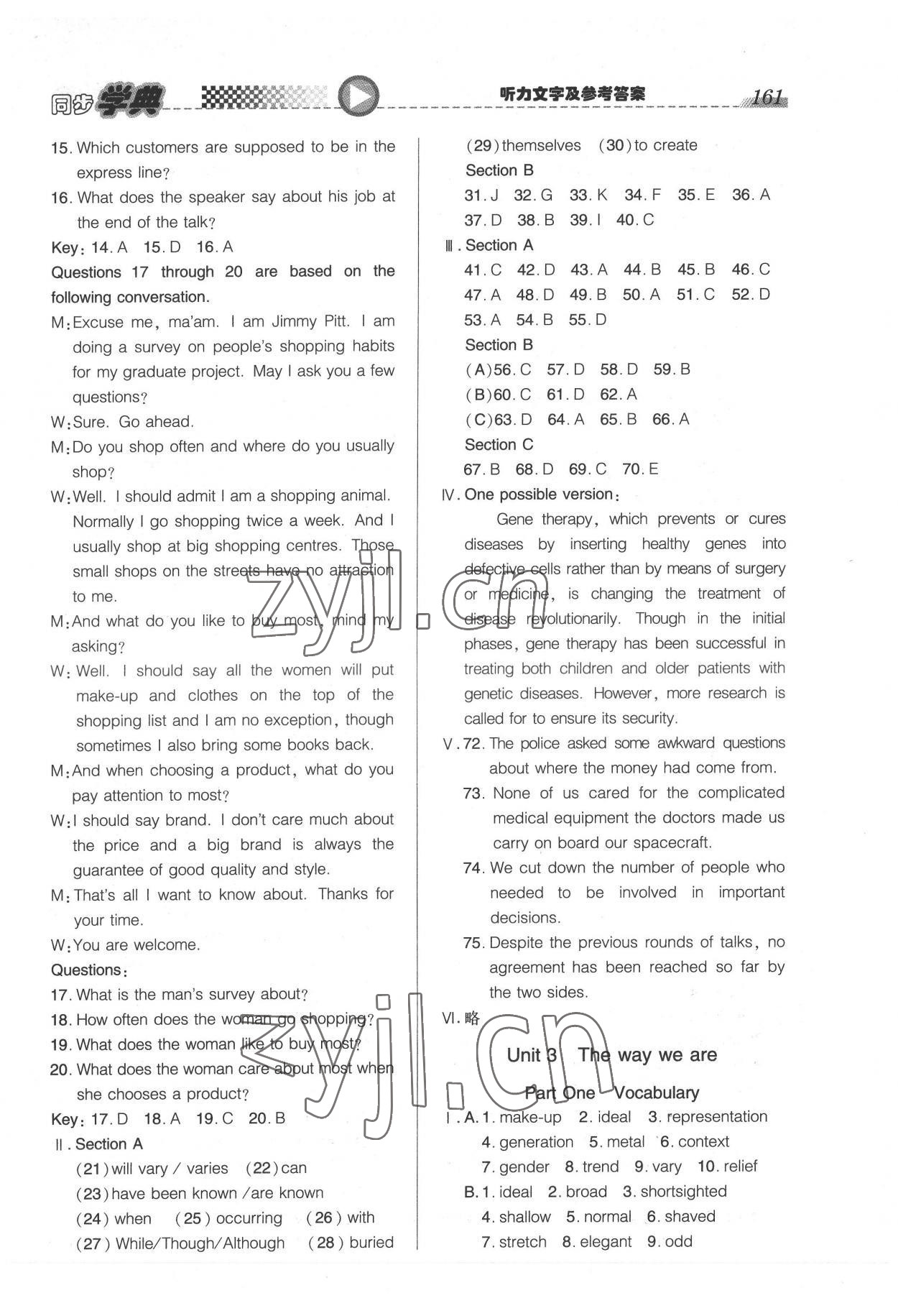 注:目前有些书本章节名称可能整理的还不是很完善,但都是按照顺序排列的,请同学们按照顺序仔细查找。练习册 2022年惠宇文化同步学典高中英语必修第三册沪教版 答案主要是用来给同学们做完题方便对答案用的,请勿直接抄袭。