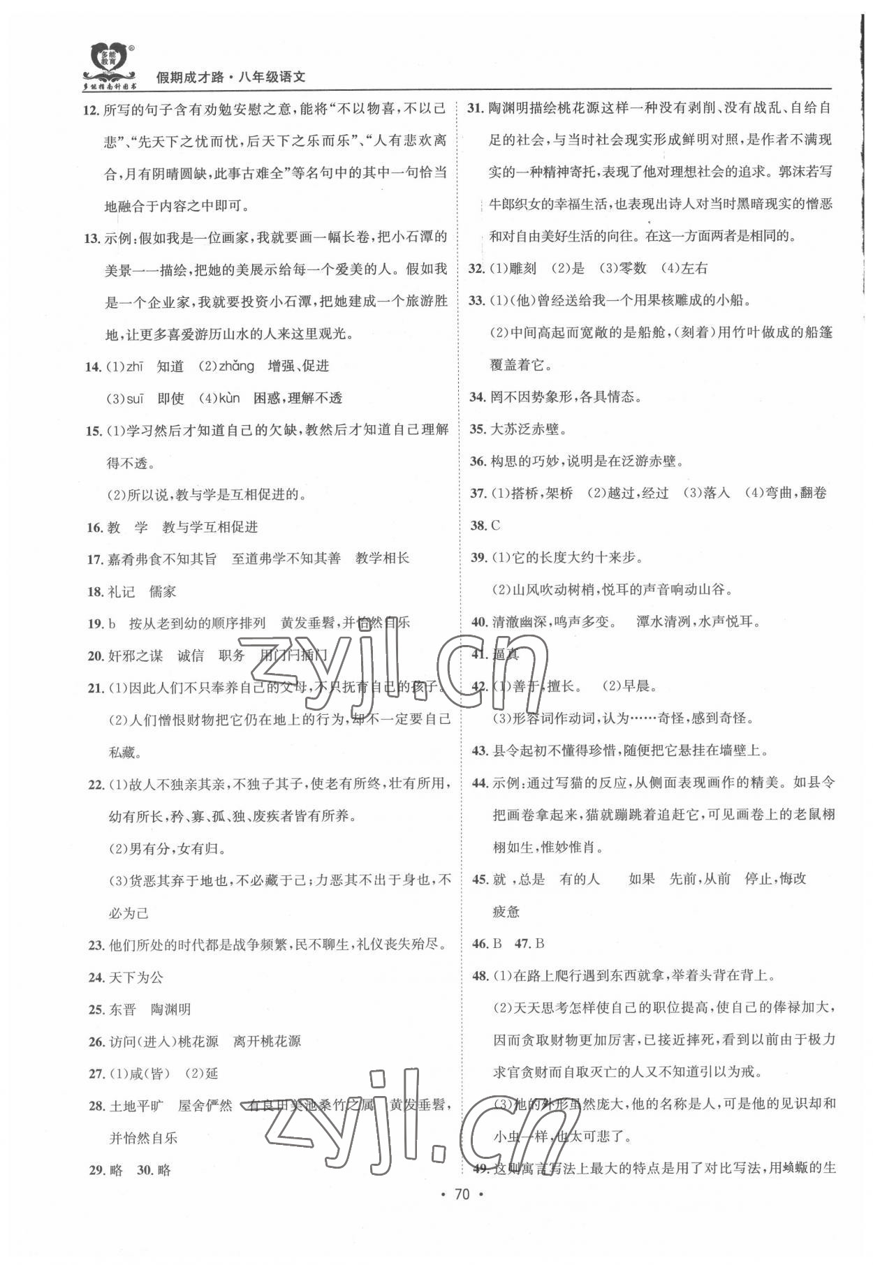 注:目前有些书本章节名称可能整理的还不是很完善,但都是按照顺序排列的,请同学们按照顺序仔细查找。练习册 2022年假期成才路八年级语文暑假 答案主要是用来给同学们做完题方便对答案用的,请勿直接抄袭。