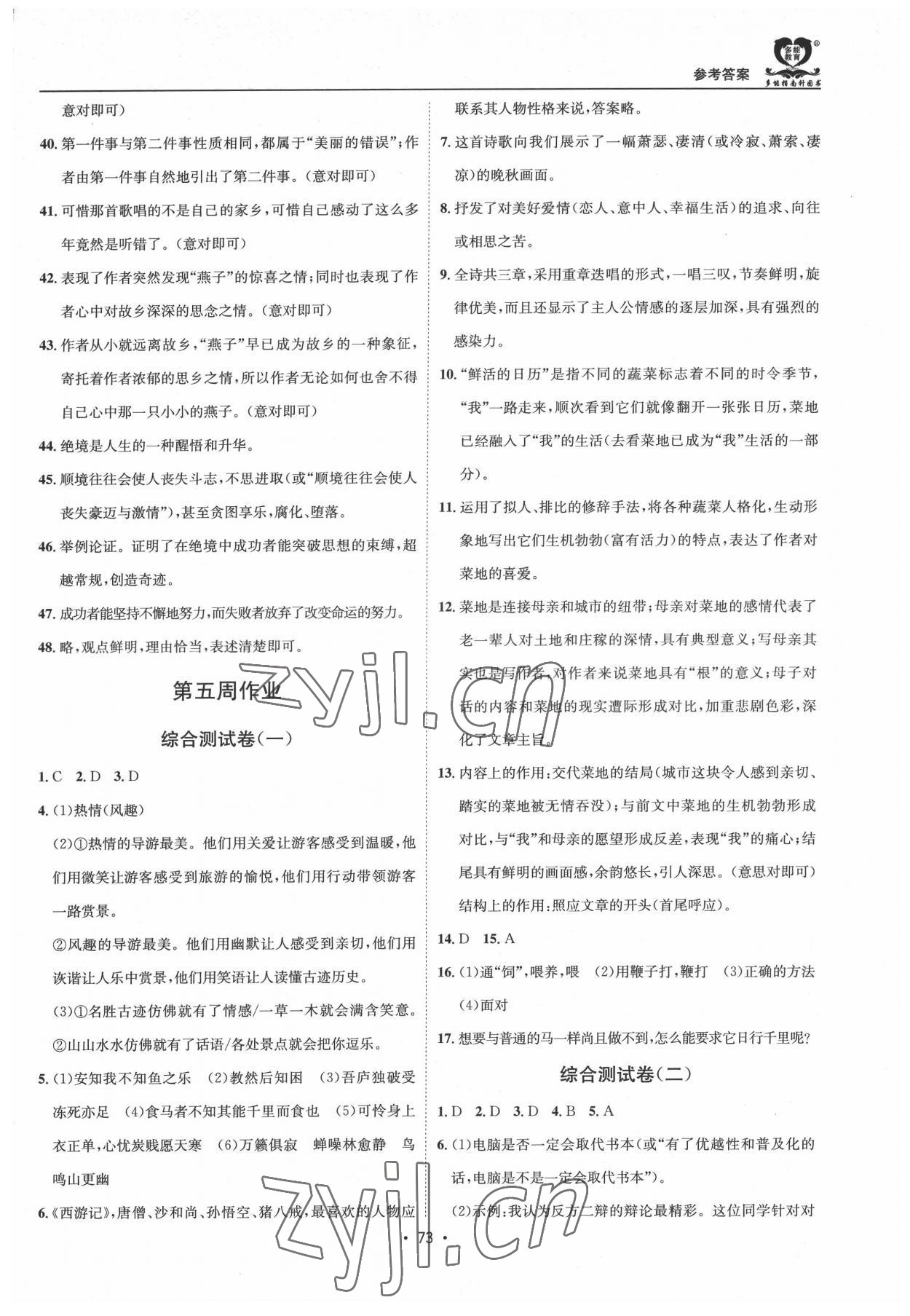 注:目前有些书本章节名称可能整理的还不是很完善,但都是按照顺序排列的,请同学们按照顺序仔细查找。练习册 2022年假期成才路八年级语文暑假 答案主要是用来给同学们做完题方便对答案用的,请勿直接抄袭。