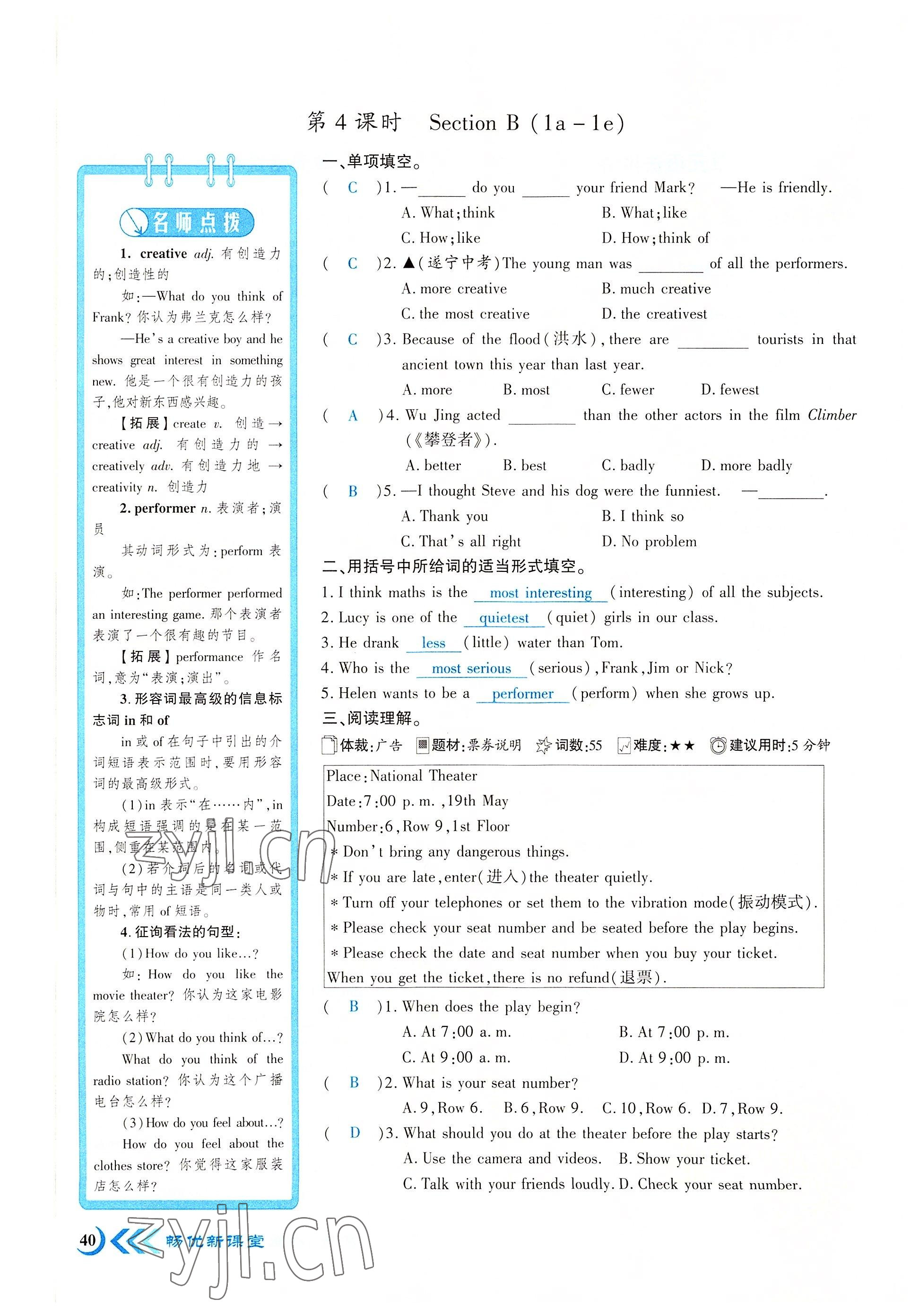 注:目前有些书本章节名称可能整理的还不是很完善,但都是按照顺序排列的,请同学们按照顺序仔细查找。练习册 2022年畅优新课堂八年级英语上册人教版江西专版 答案主要是用来给同学们做完题方便对答案用的,请勿直接抄袭。