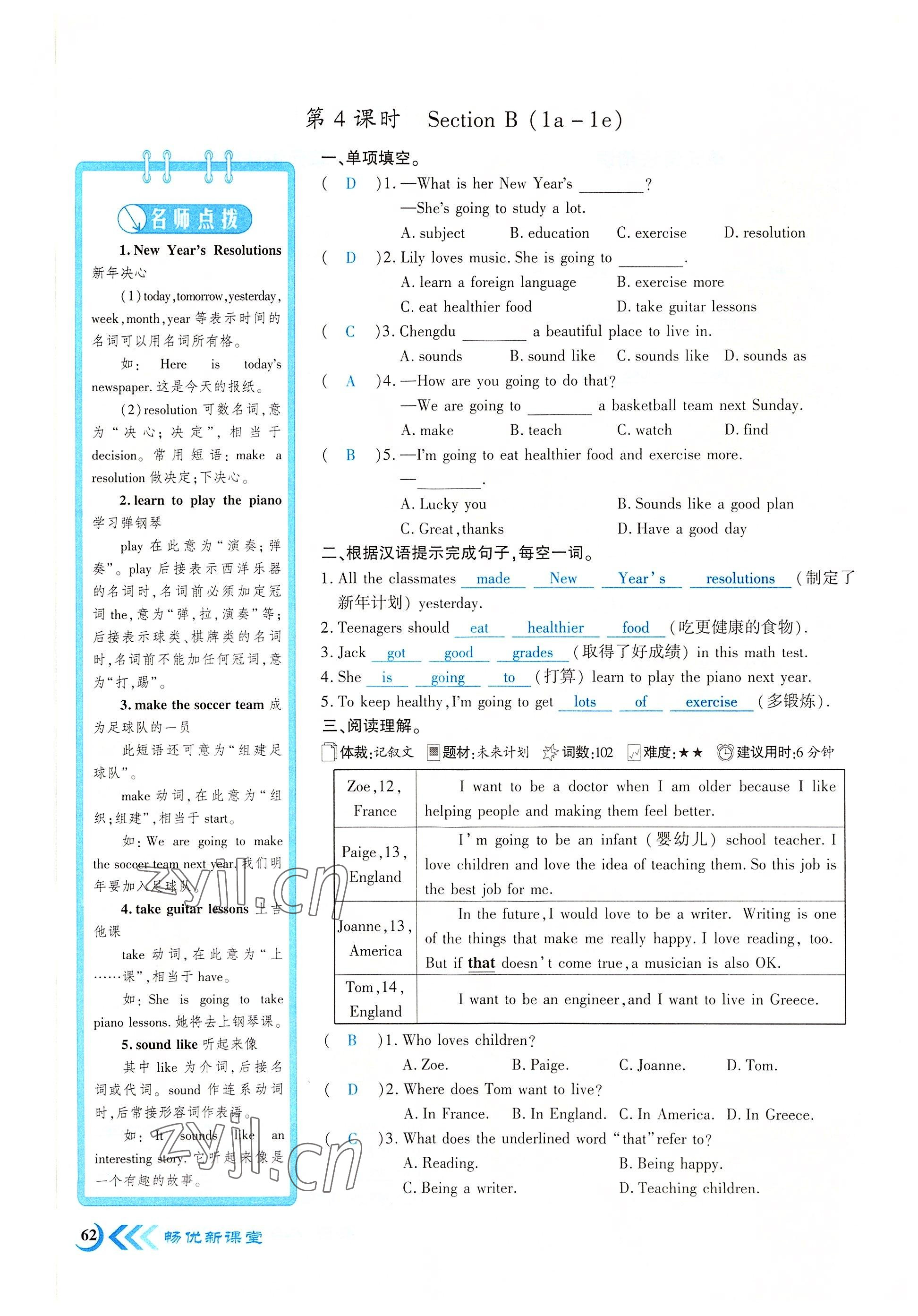 注:目前有些书本章节名称可能整理的还不是很完善,但都是按照顺序排列的,请同学们按照顺序仔细查找。练习册 2022年畅优新课堂八年级英语上册人教版江西专版 答案主要是用来给同学们做完题方便对答案用的,请勿直接抄袭。