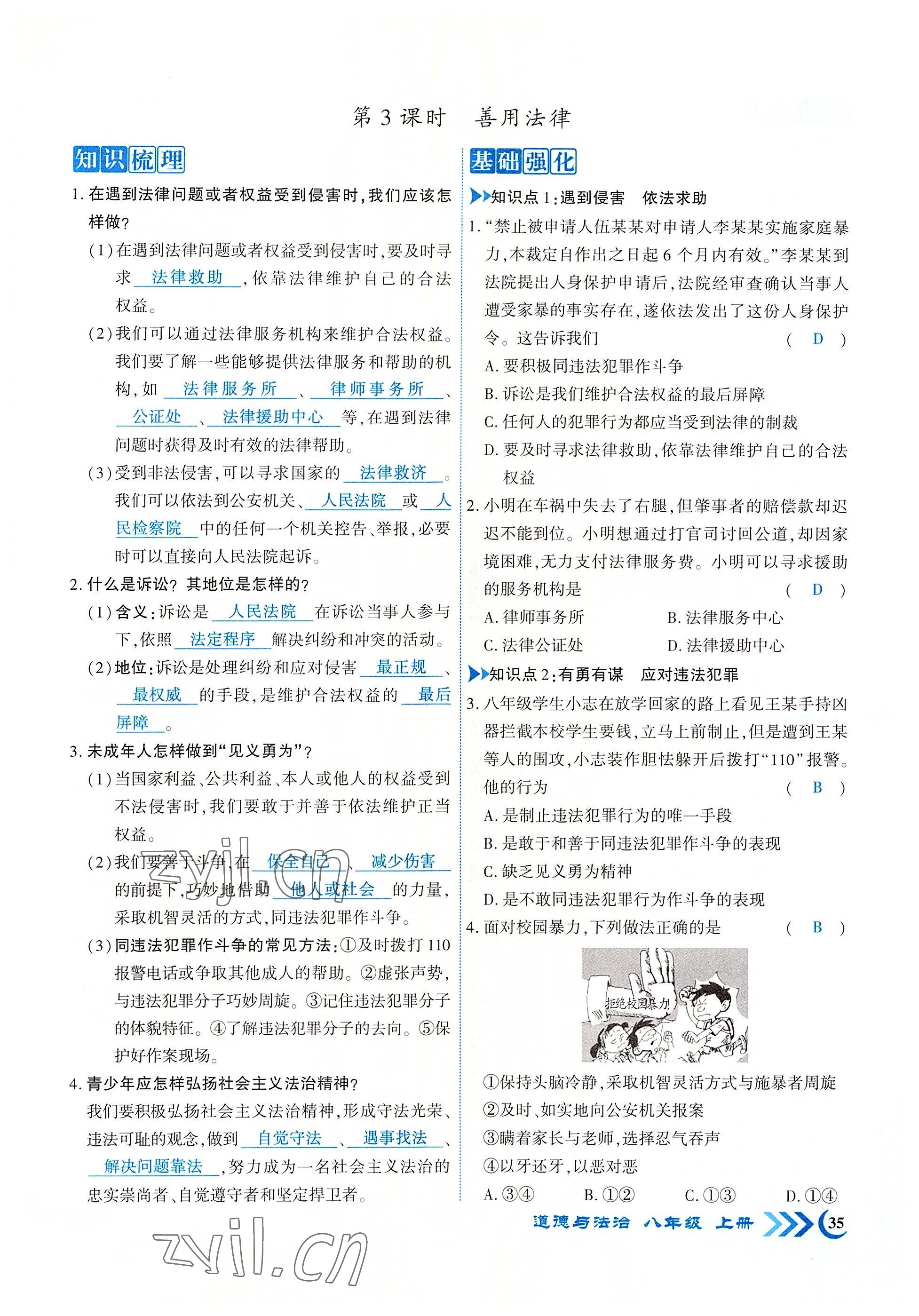 注:目前有些书本章节名称可能整理的还不是很完善,但都是按照顺序排列的,请同学们按照顺序仔细查找。练习册 2022年畅优新课堂八年级道德与法治上册人教版江西专版 答案主要是用来给同学们做完题方便对答案用的,请勿直接抄袭。