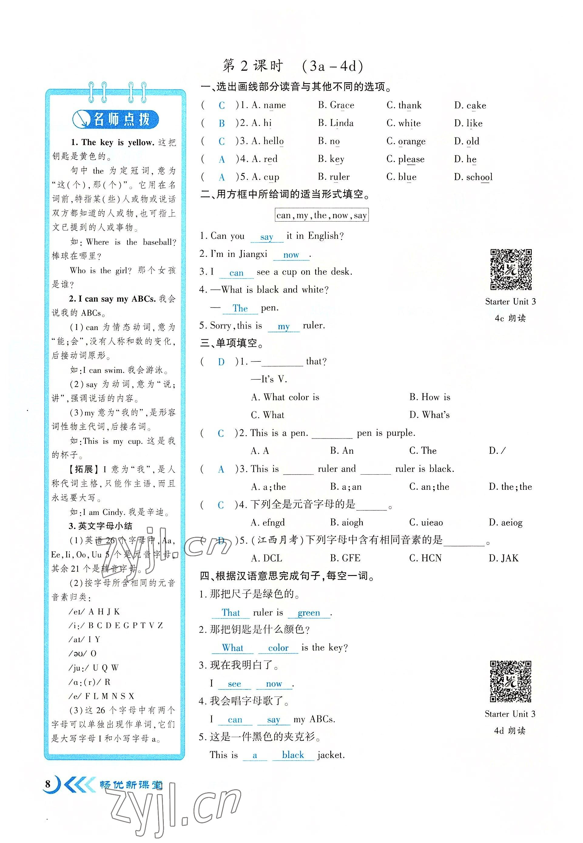 注:目前有些书本章节名称可能整理的还不是很完善,但都是按照顺序排列的,请同学们按照顺序仔细查找。练习册 2022年畅优新课堂七年级英语上册人教版江西专版 答案主要是用来给同学们做完题方便对答案用的,请勿直接抄袭。