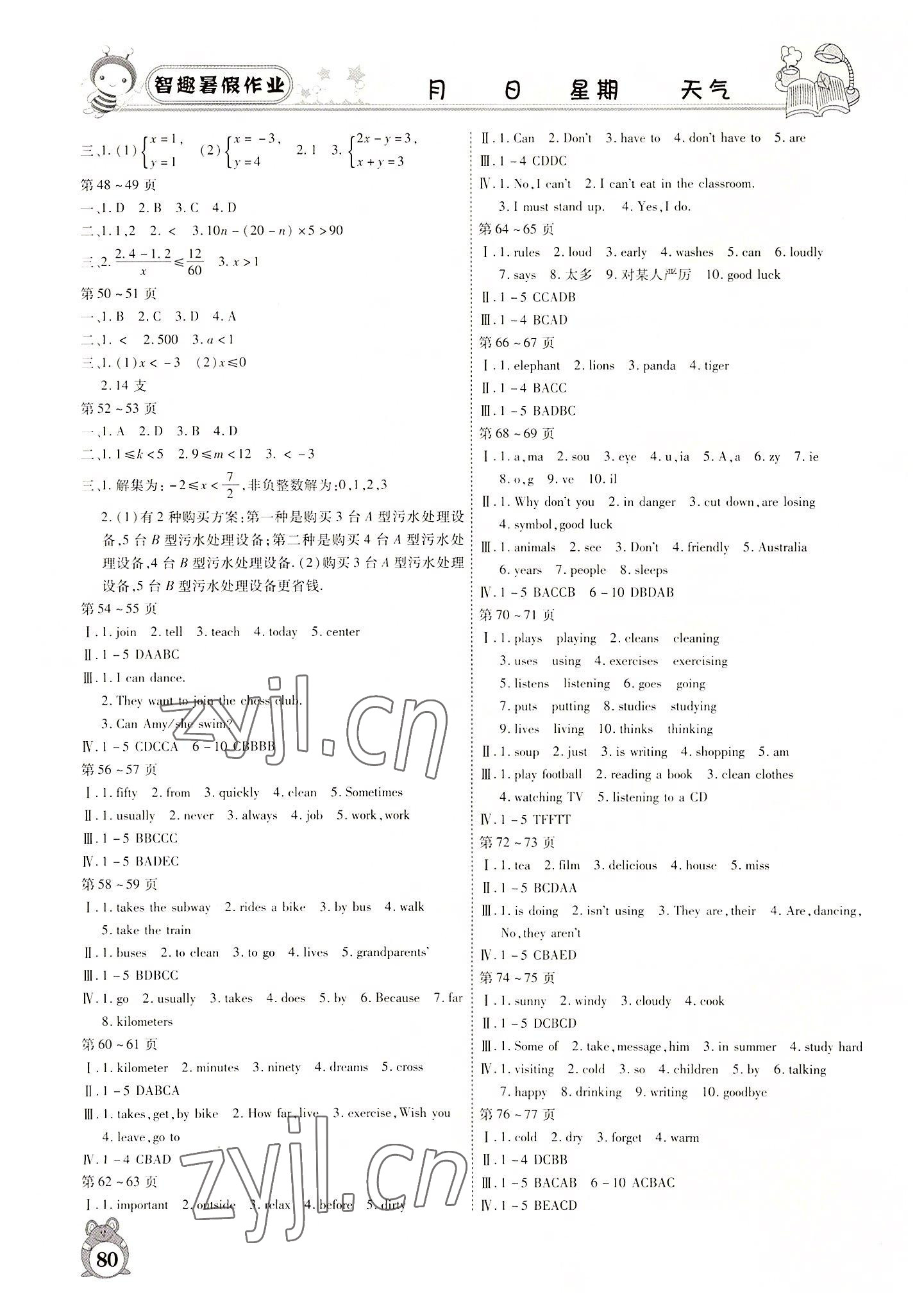 2022年智趣暑假作业七年级合订本云南科技出版社