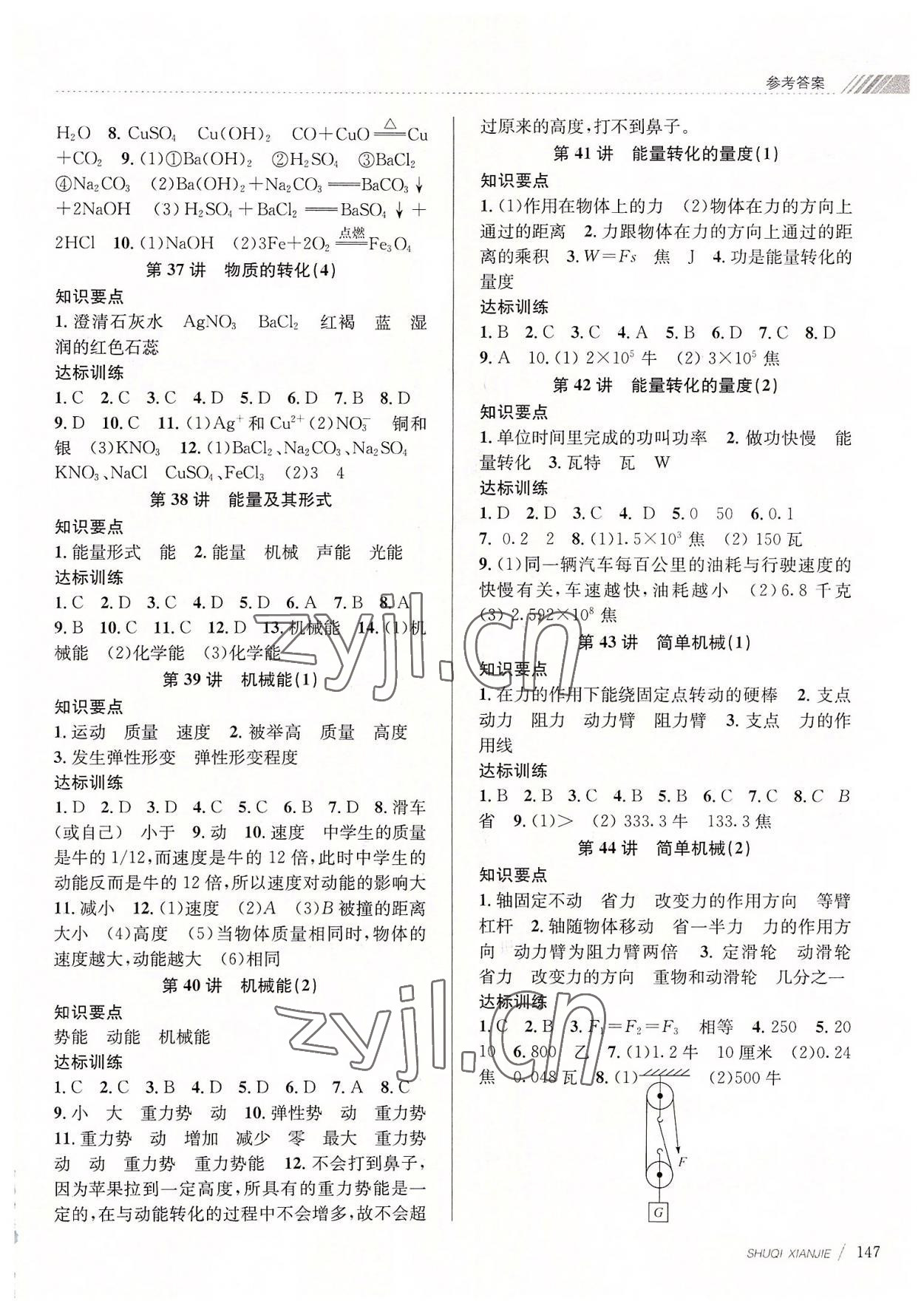 注:目前有些书本章节名称可能整理的还不是很完善,但都是按照顺序排列的,请同学们按照顺序仔细查找。练习册 2022年初中暑期衔接八升九年级科学浙教版 答案主要是用来给同学们做完题方便对答案用的,请勿直接抄袭。