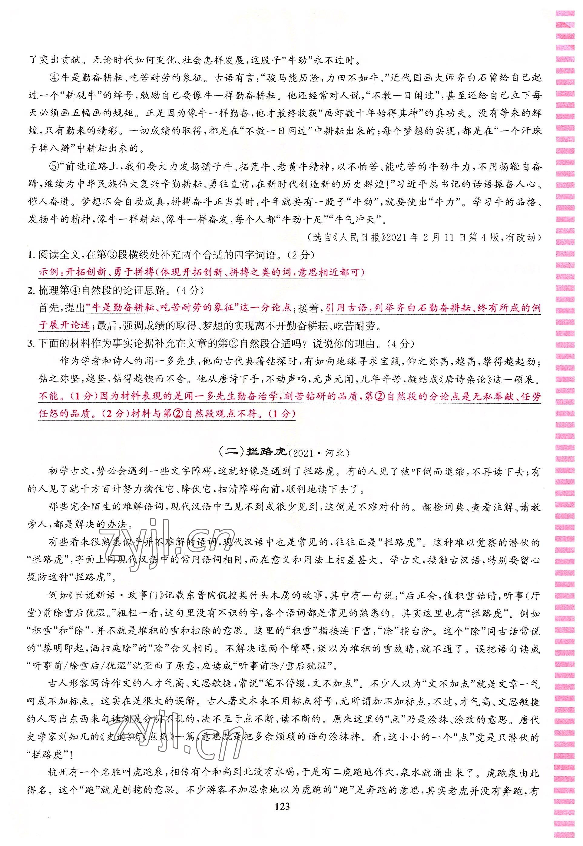 注:目前有些书本章节名称可能整理的还不是很完善,但都是按照顺序排列的,请同学们按照顺序仔细查找。练习册 2022年语文花开天津科学技术出版社七年级语文人教版浙江专版 答案主要是用来给同学们做完题方便对答案用的,请勿直接抄袭。