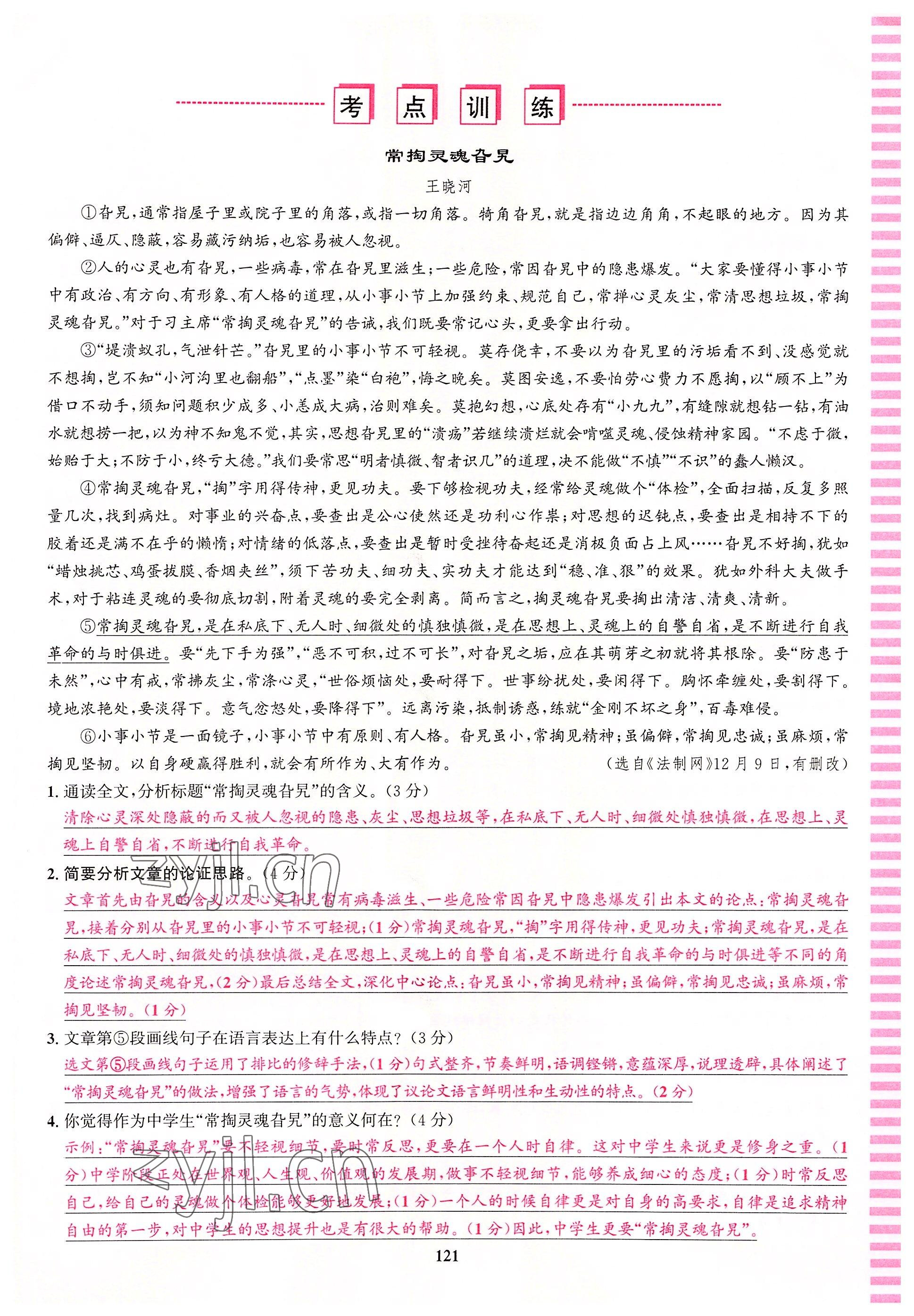 注:目前有些书本章节名称可能整理的还不是很完善,但都是按照顺序排列的,请同学们按照顺序仔细查找。练习册 2022年语文花开天津科学技术出版社九年级语文全一册人教版浙江专版 答案主要是用来给同学们做完题方便对答案用的,请勿直接抄袭。