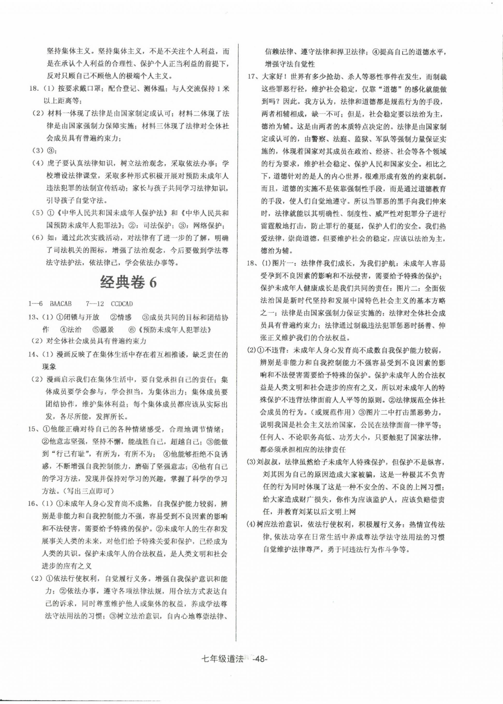 注:目前有些书本章节名称可能整理的还不是很完善,但都是按照顺序排列的,请同学们按照顺序仔细查找。练习册 2022年全新版期末经典卷七年级道德与法治下册人教版 答案主要是用来给同学们做完题方便对答案用的,请勿直接抄袭。