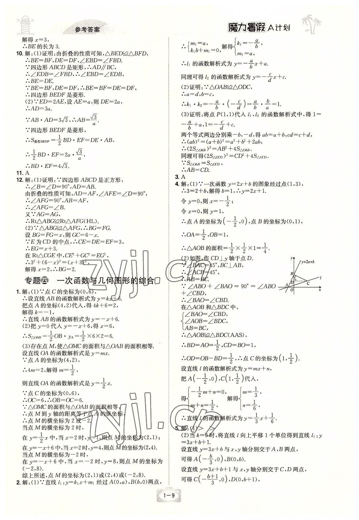 2022年魔力暑假A计划八年级数学人教版江西美术出版社
