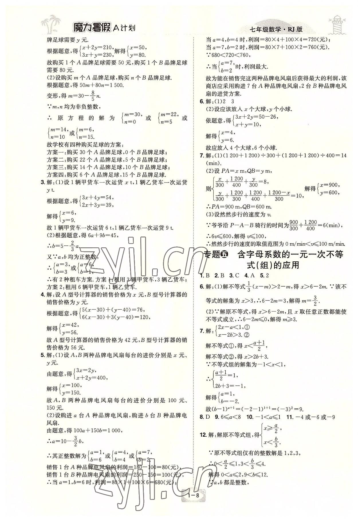 2022年魔力暑假A计划七年级数学人教版江西美术出版社