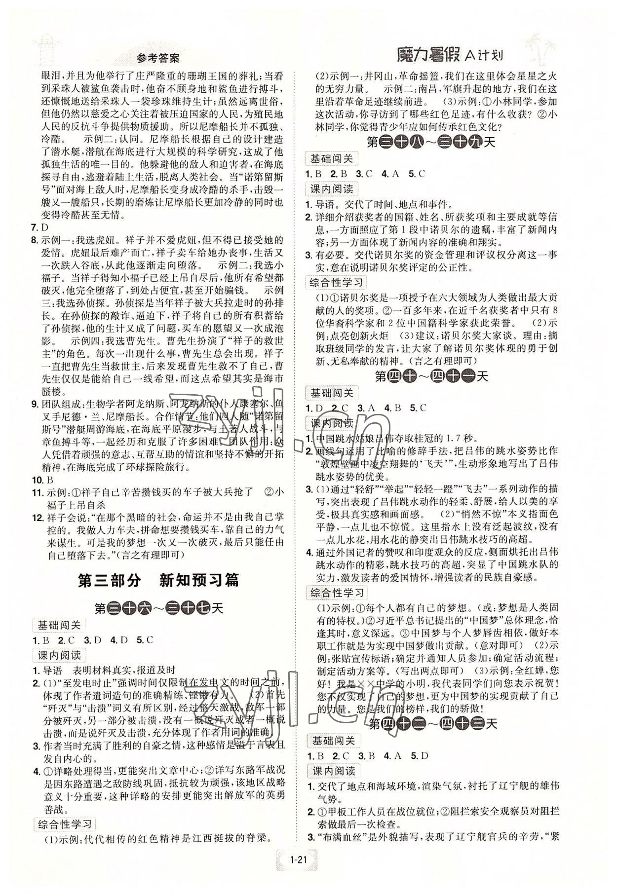 2022年魔力暑假A计划七年级语文人教版江西美术出版社