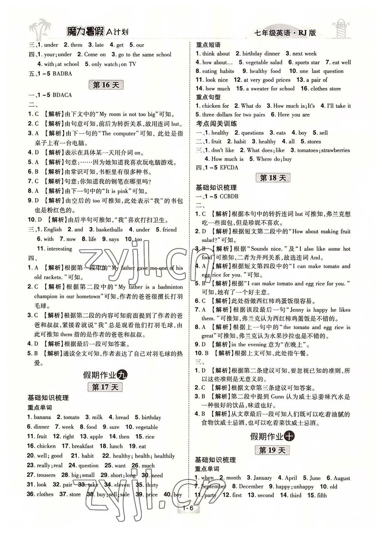 2022年魔力暑假A计划七年级英语人教版江西美术出版社