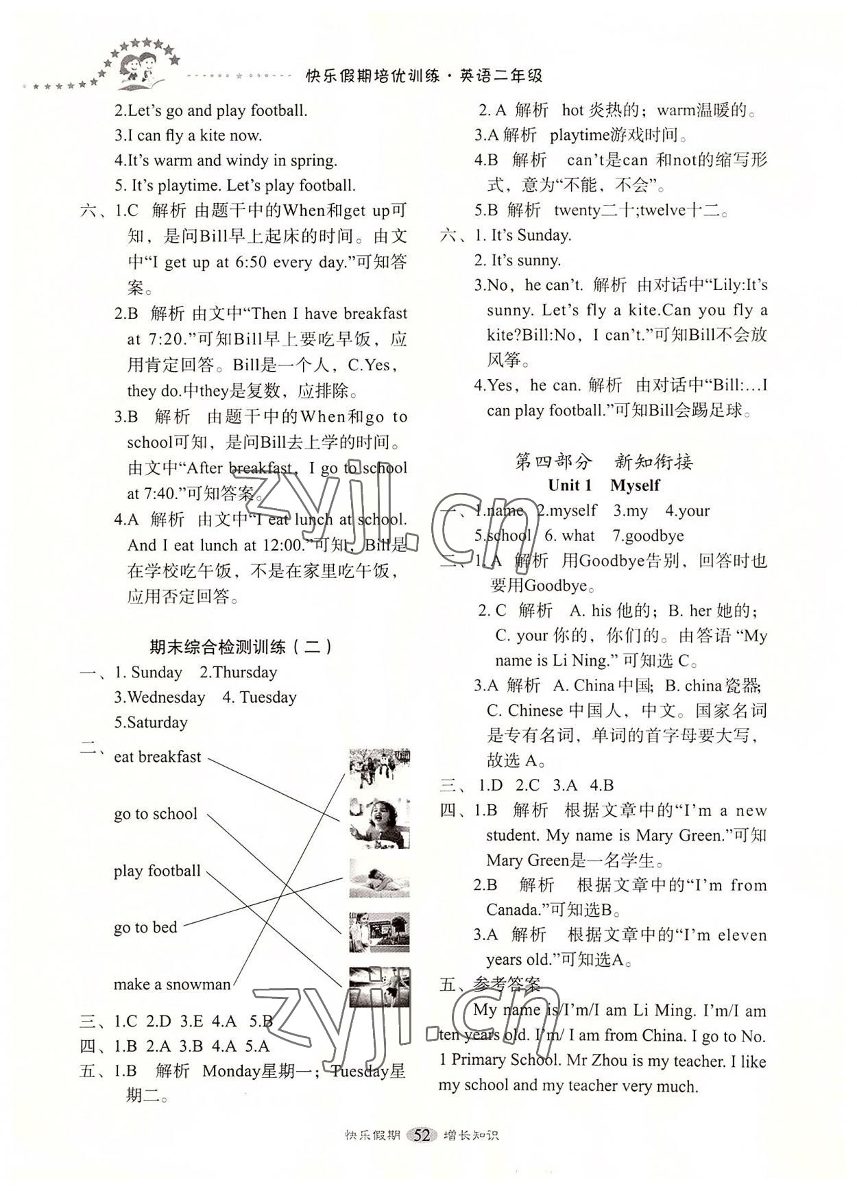 注:目前有些书本章节名称可能整理的还不是很完善,但都是按照顺序排列的,请同学们按照顺序仔细查找。练习册 2022年快乐假期培优训练衔接教材二年级英语 答案主要是用来给同学们做完题方便对答案用的,请勿直接抄袭。