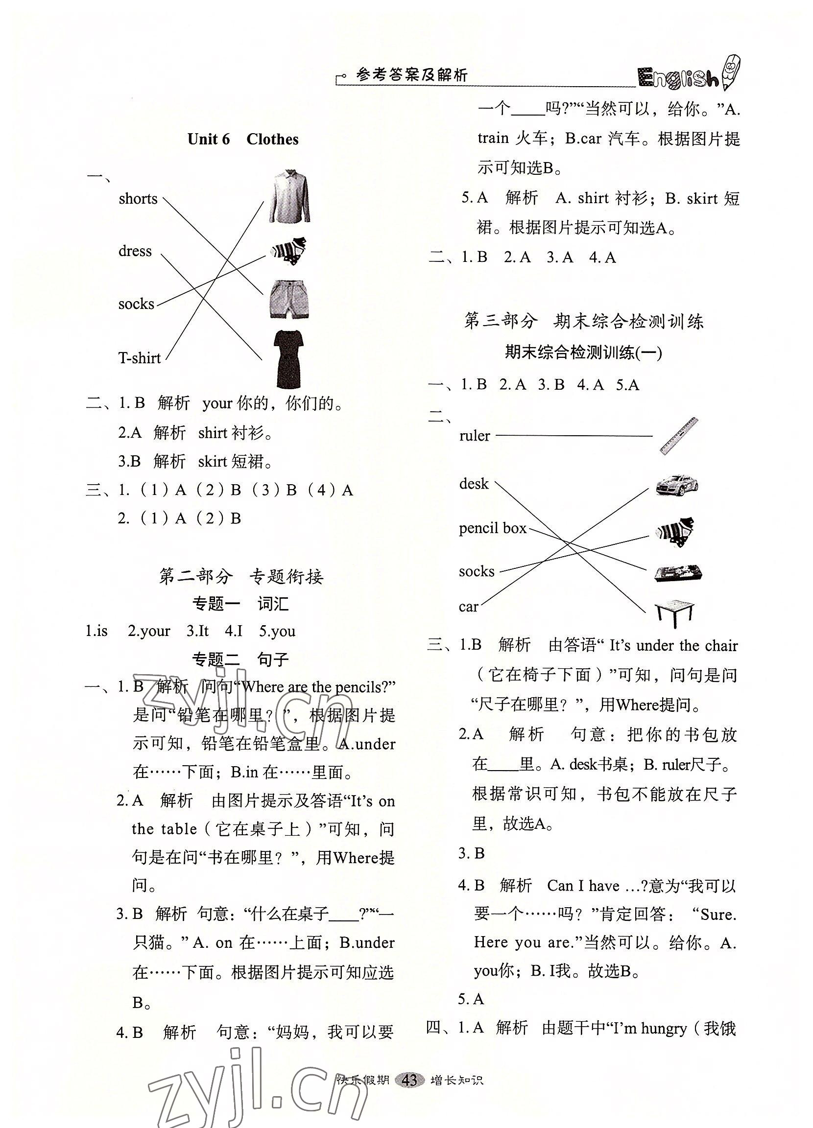 注:目前有些书本章节名称可能整理的还不是很完善,但都是按照顺序排列的,请同学们按照顺序仔细查找。练习册 2022年快乐假期培优训练衔接教材一年级英语人教版 答案主要是用来给同学们做完题方便对答案用的,请勿直接抄袭。
