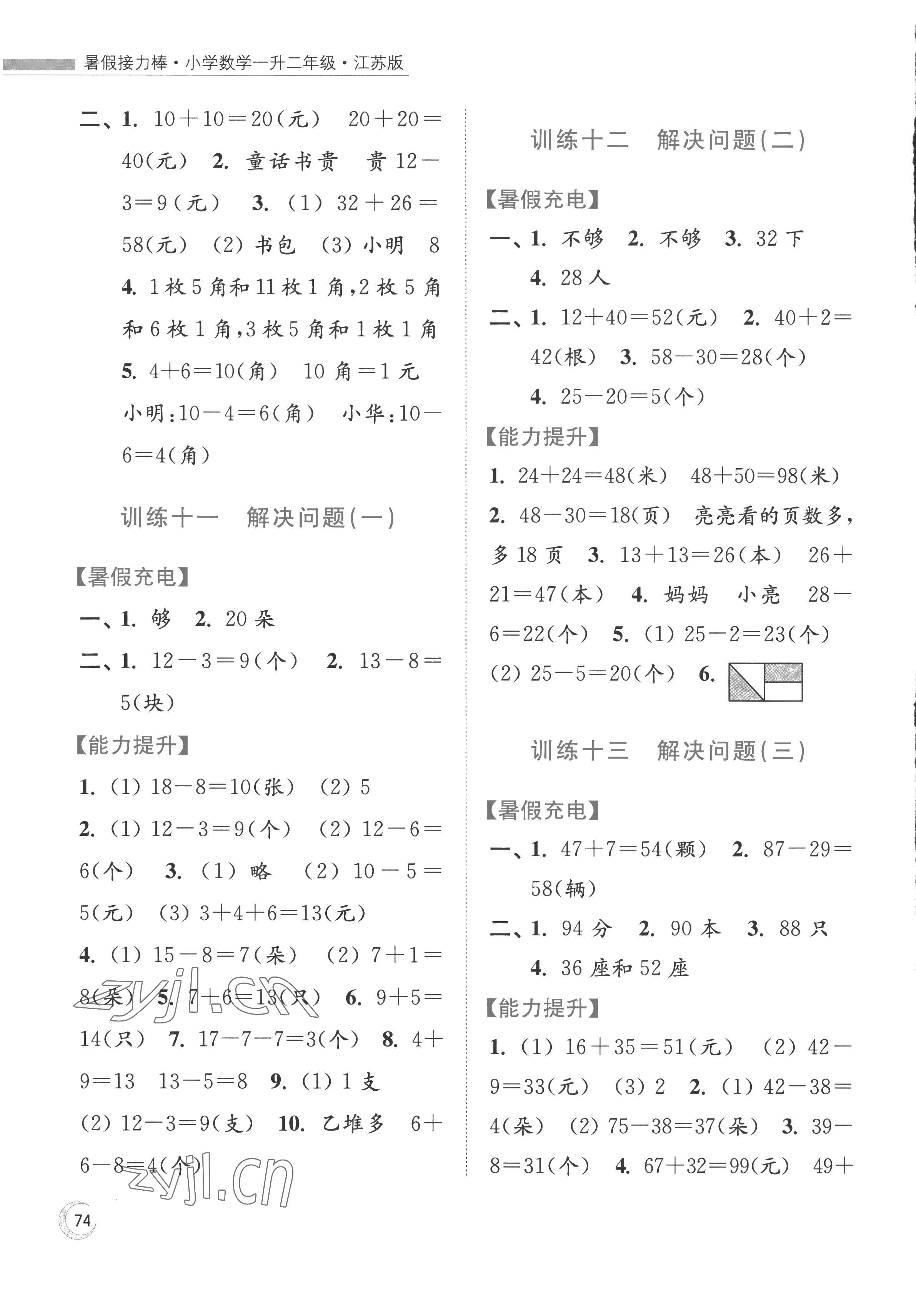 注:目前有些书本章节名称可能整理的还不是很完善,但都是按照顺序排列的,请同学们按照顺序仔细查找。练习册 2022年小学数学暑假接力棒一升二年级江苏版 答案主要是用来给同学们做完题方便对答案用的,请勿直接抄袭。