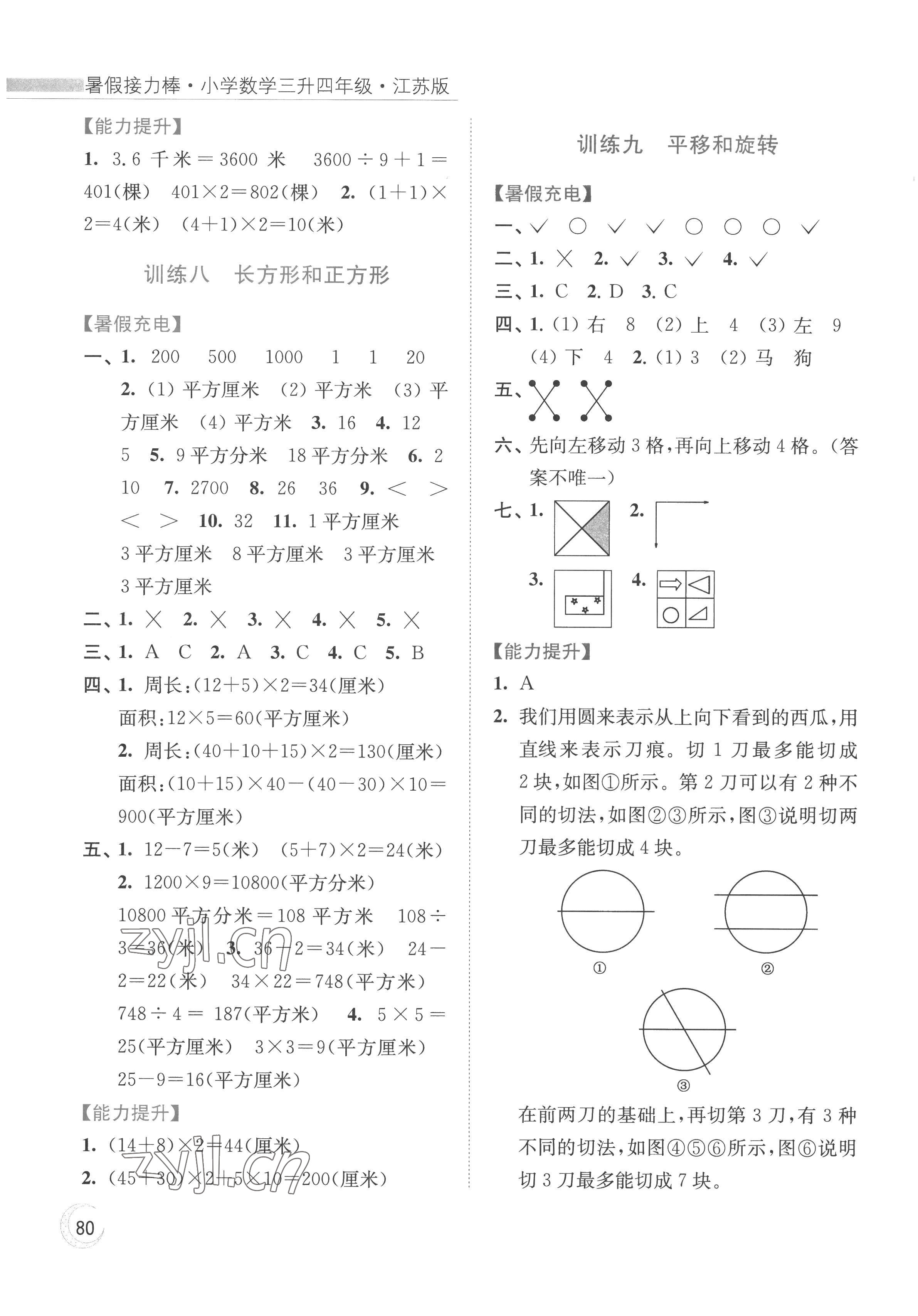 2022年小学数学暑假接力棒三升四年级江苏版