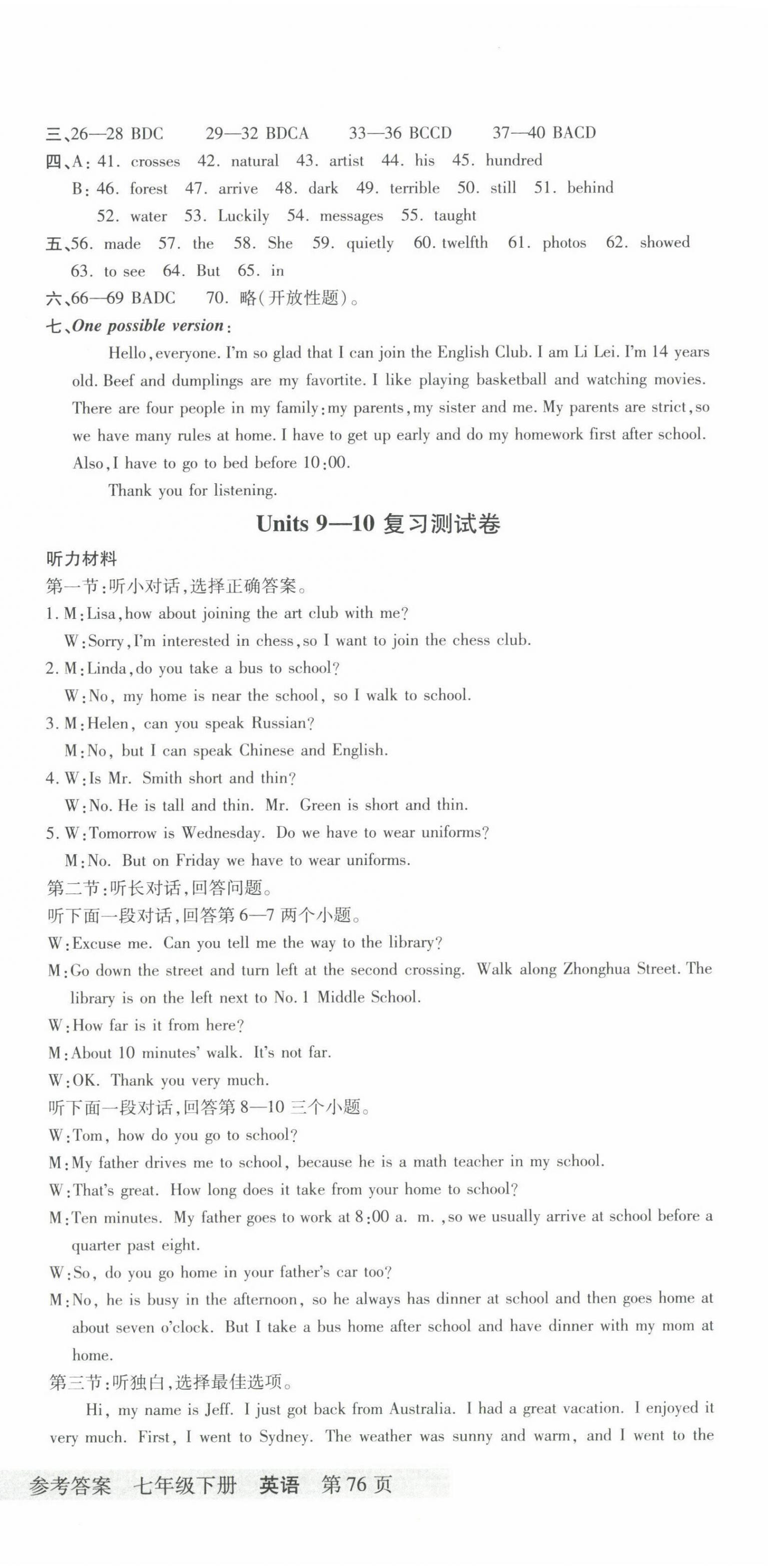 注:目前有些书本章节名称可能整理的还不是很完善,但都是按照顺序排列的,请同学们按照顺序仔细查找。练习册 2022年各地期末测试大考卷七年级英语下册人教版浙江专版 答案主要是用来给同学们做完题方便对答案用的,请勿直接抄袭。