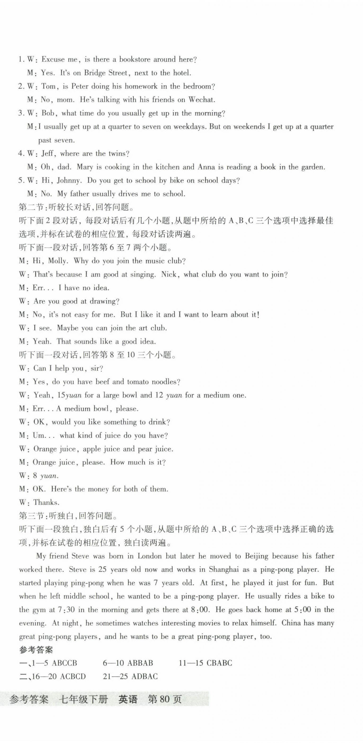 注:目前有些书本章节名称可能整理的还不是很完善,但都是按照顺序排列的,请同学们按照顺序仔细查找。练习册 2022年各地期末测试大考卷七年级英语下册人教版浙江专版 答案主要是用来给同学们做完题方便对答案用的,请勿直接抄袭。