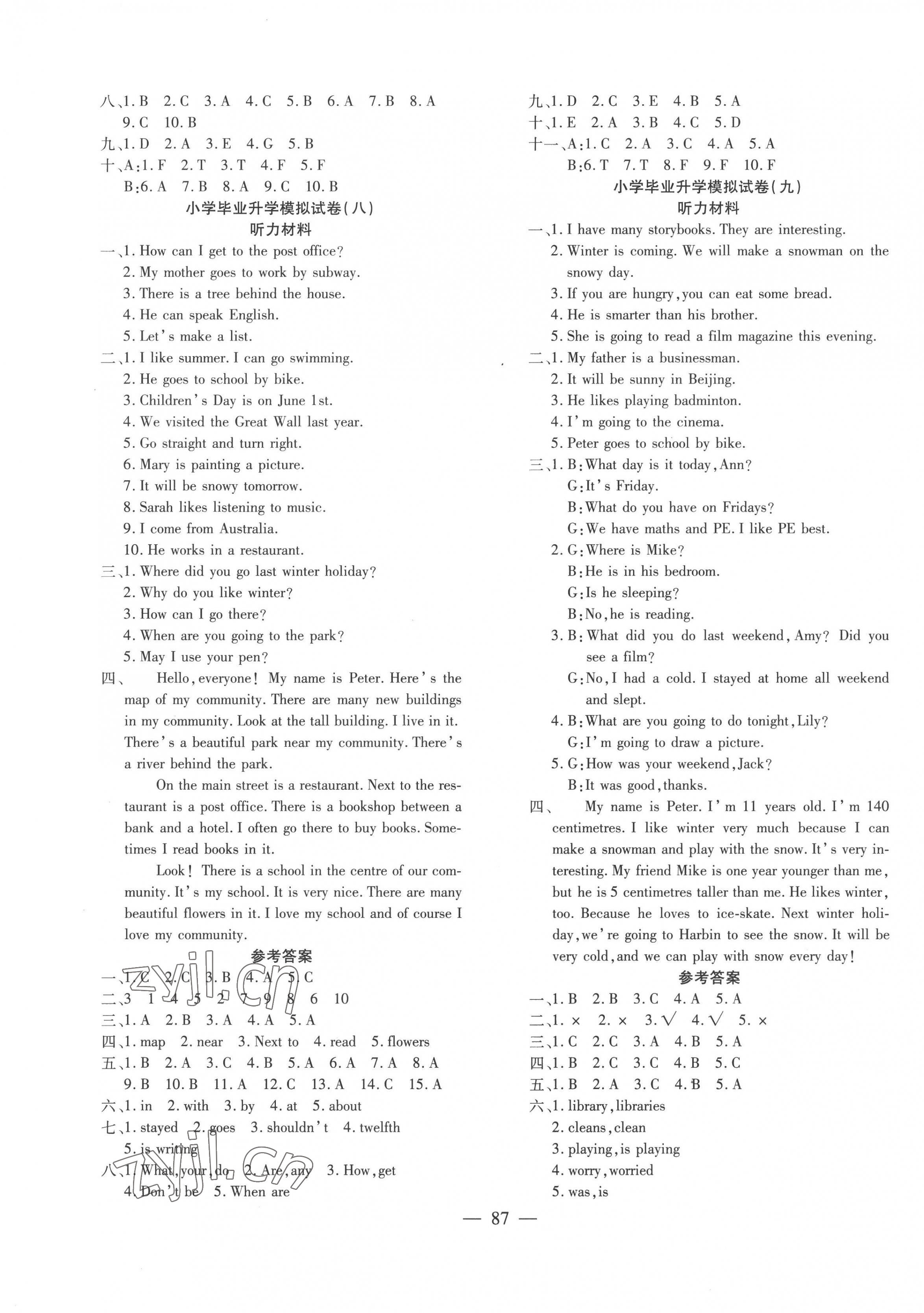 注:目前有些书本章节名称可能整理的还不是很完善,但都是按照顺序排列的,请同学们按照顺序仔细查找。练习册 2022年小升初全真模拟试卷与冲刺秘诀英语 答案主要是用来给同学们做完题方便对答案用的,请勿直接抄袭。