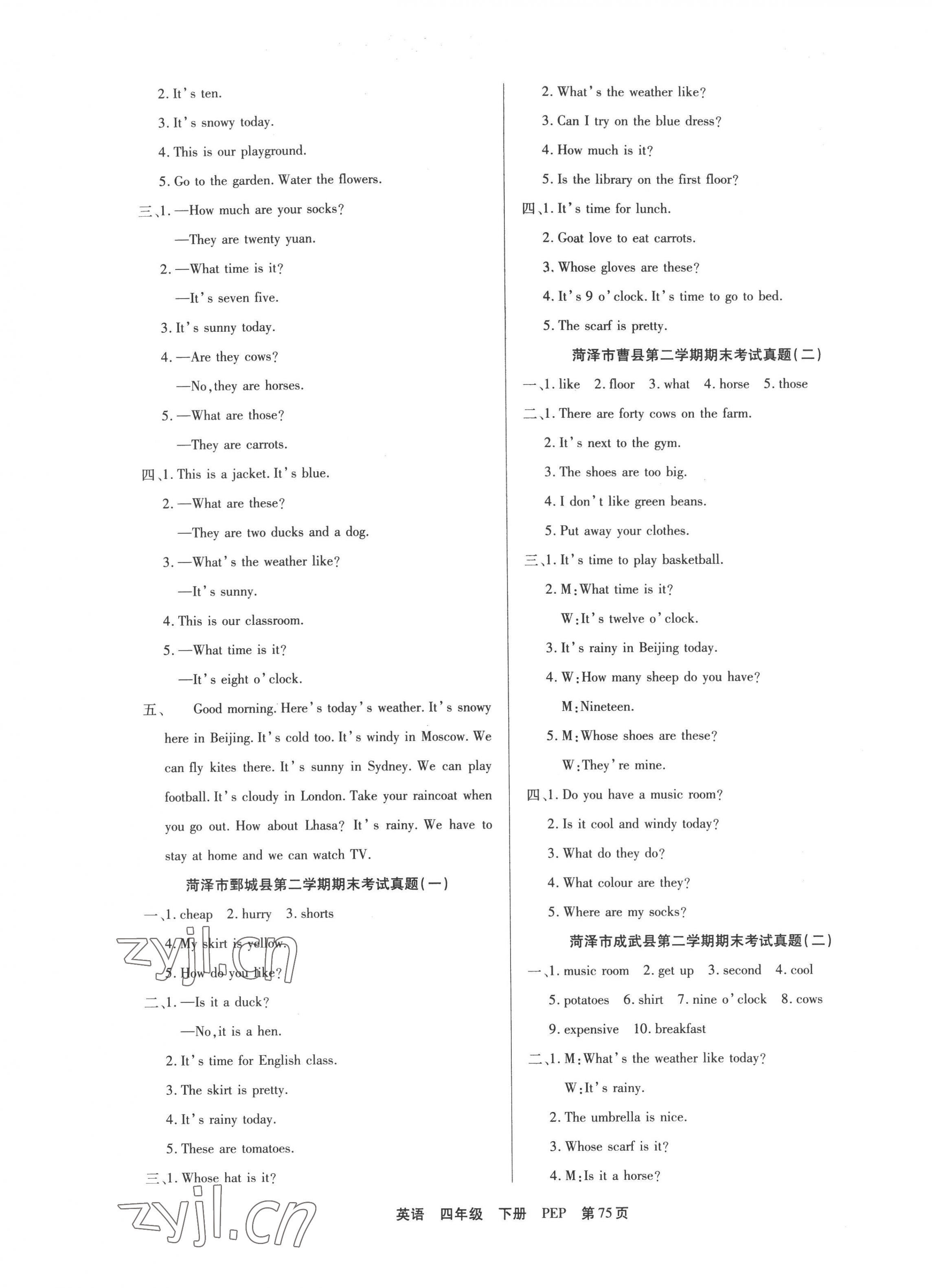 《2022年金牌期末好卷四年级英语下册人教版菏泽专版》
