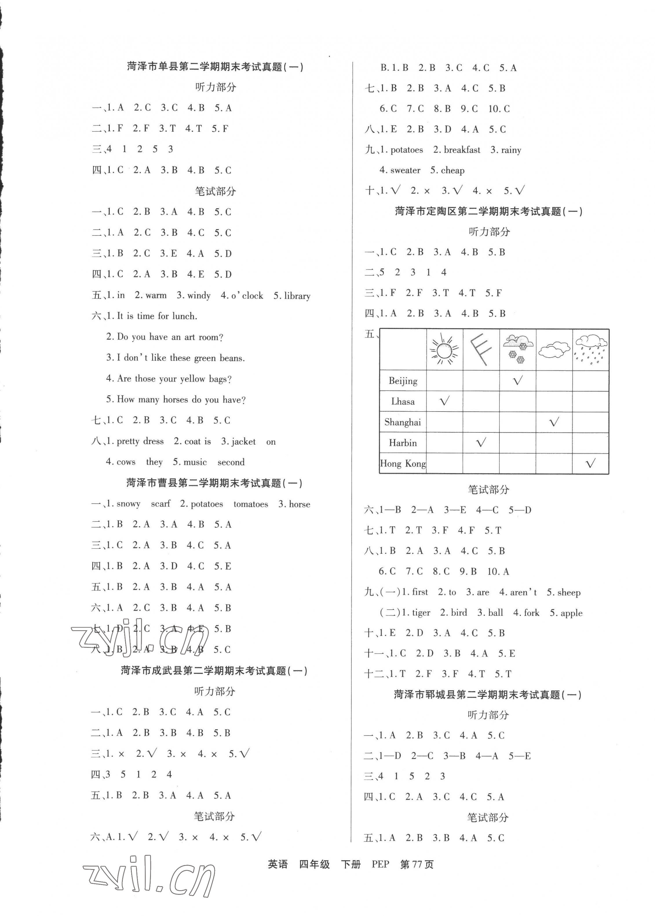 2022年金牌期末好卷四年级英语下册人教版菏泽专版