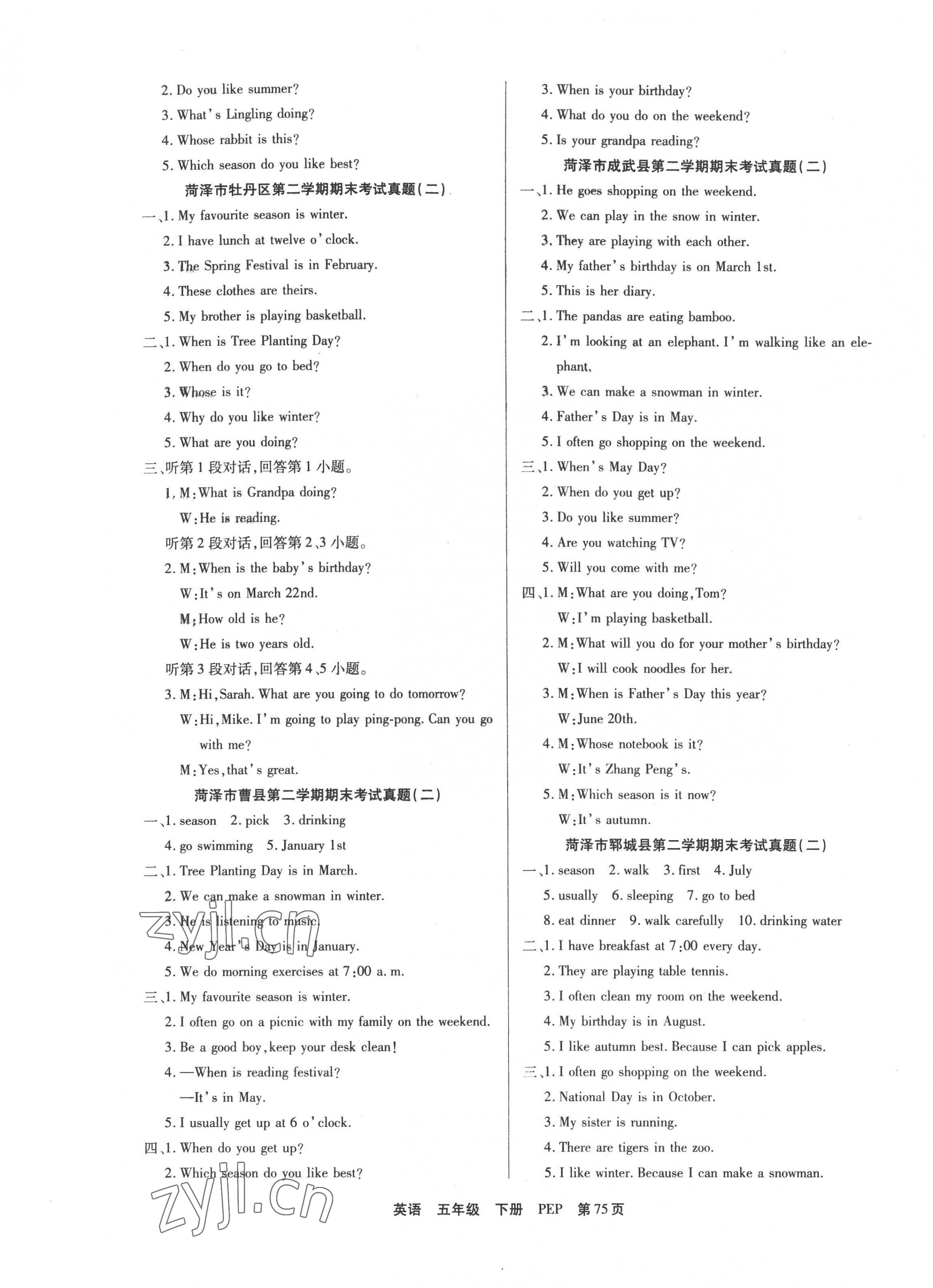 《2022年金牌期末好卷五年级英语下册人教版菏泽专版》