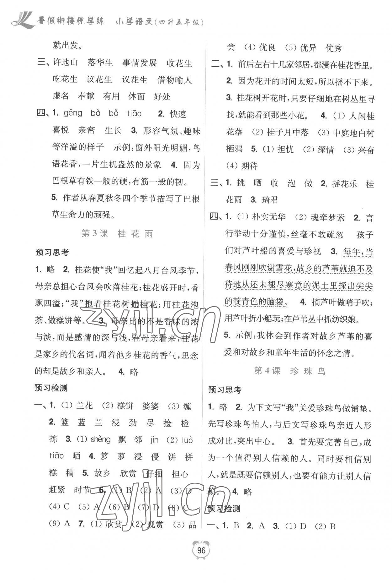 2022年暑假衔接优学练小学语文四升五年级全国版