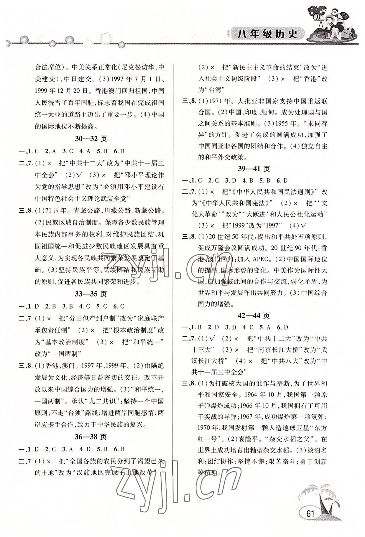 注:目前有些书本章节名称可能整理的还不是很完善,但都是按照顺序排列的,请同学们按照顺序仔细查找。练习册 2022年暑假作业假期课堂八年级历史 答案主要是用来给同学们做完题方便对答案用的,请勿直接抄袭。