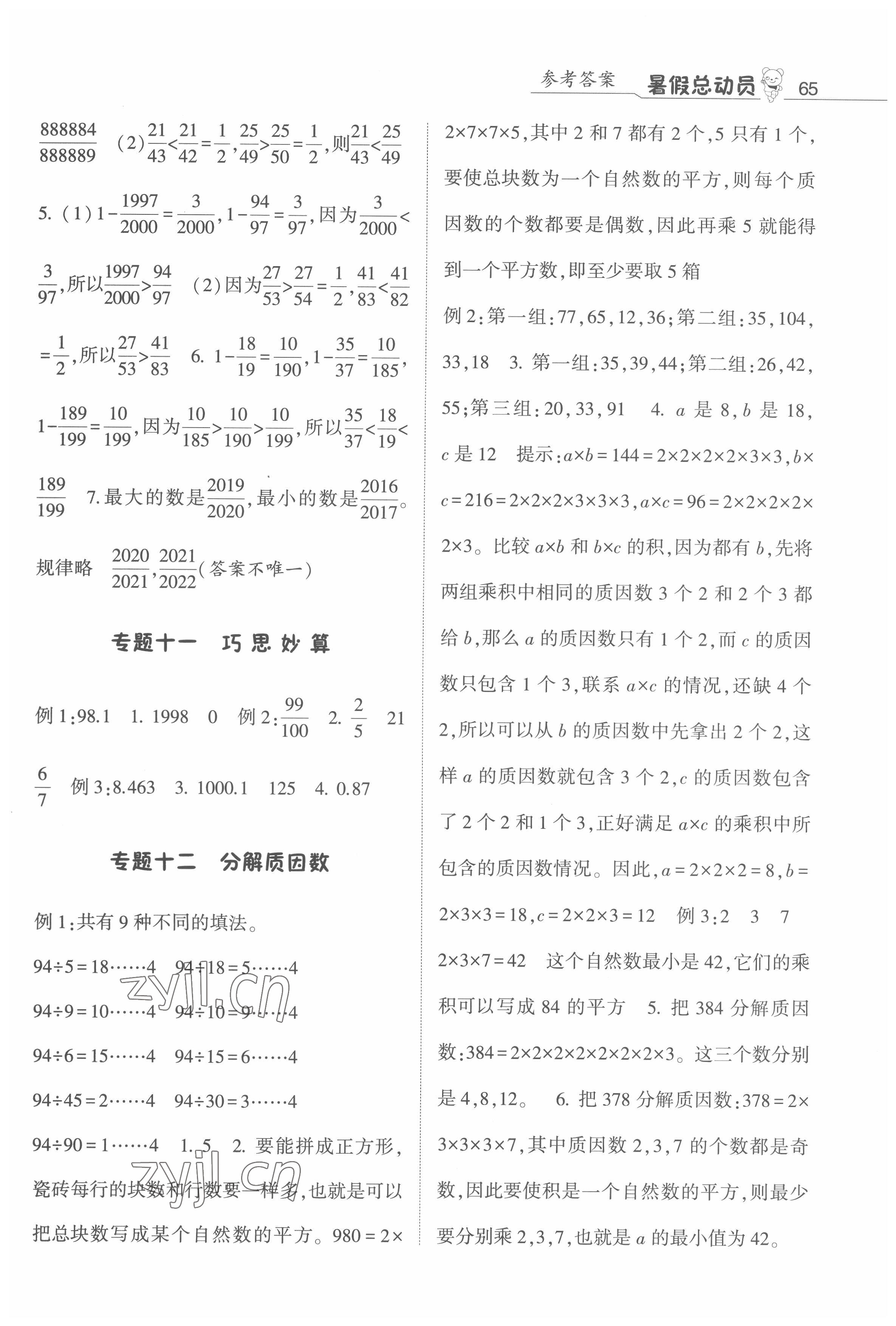 2022年暑假总动员5年级升6年级数学江苏版宁夏人民教育出版社