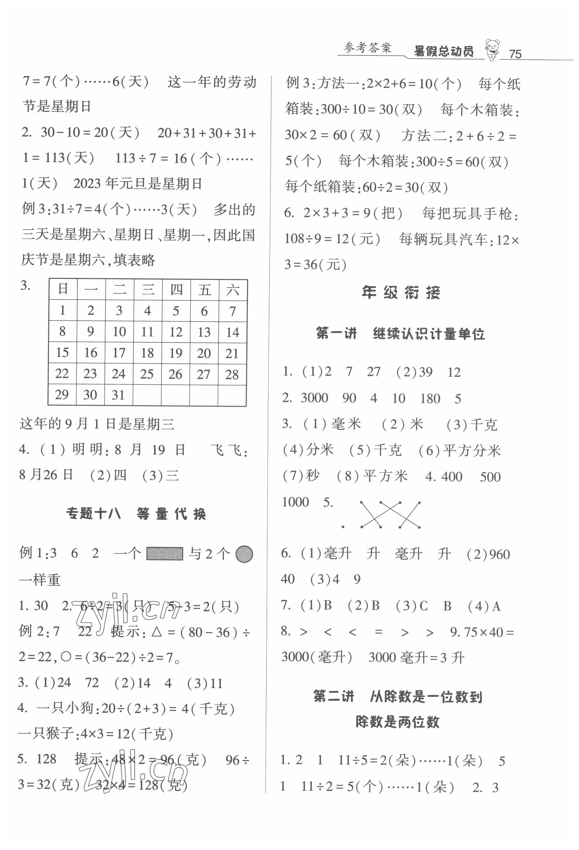 2022年暑假总动员3年级升4年级数学江苏版宁夏人民教育出版社