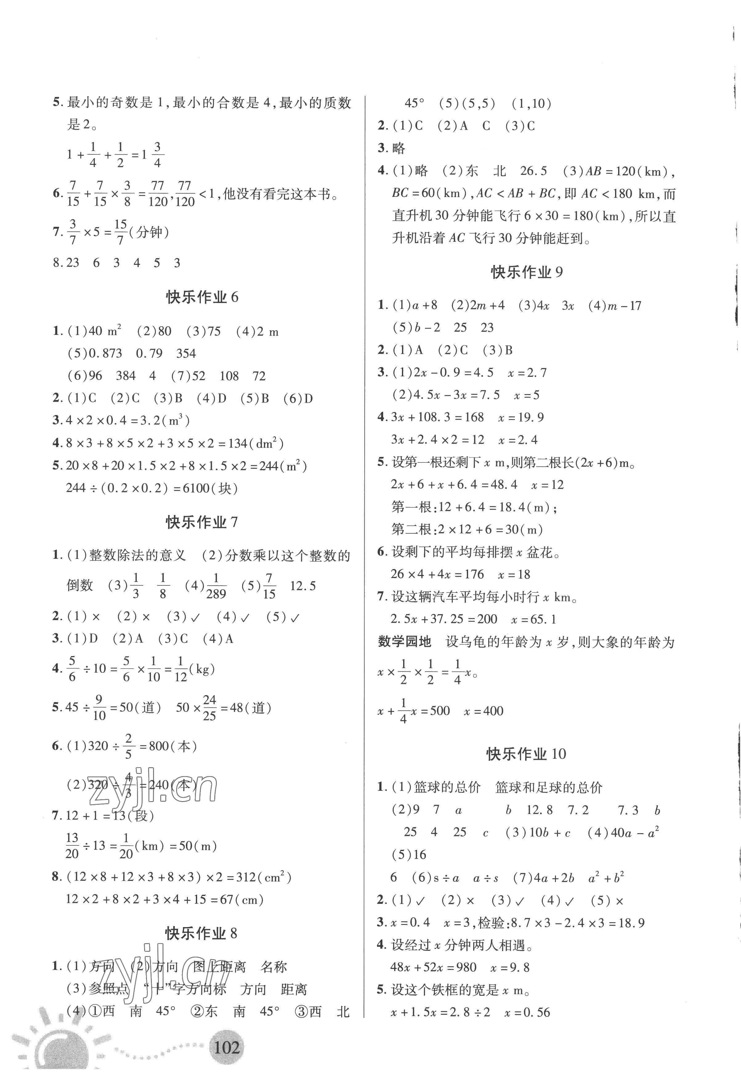 2022年暑假作业二十一世纪出版社五年级合订本景德镇专版