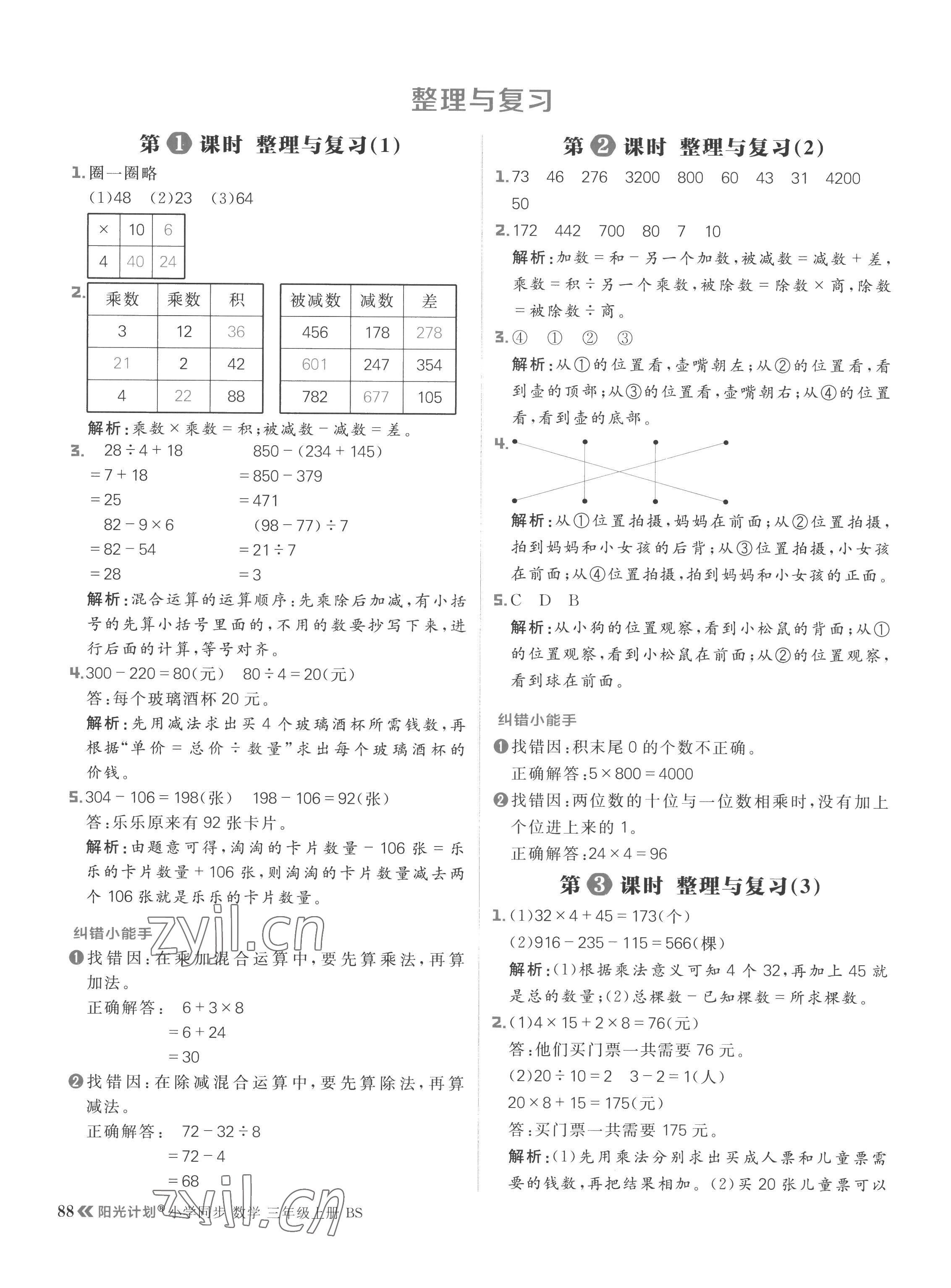 注:目前有些书本章节名称可能整理的还不是很完善,但都是按照顺序排列的,请同学们按照顺序仔细查找。练习册 2022年阳光计划小学同步三年级数学上册北师大版 答案主要是用来给同学们做完题方便对答案用的,请勿直接抄袭。