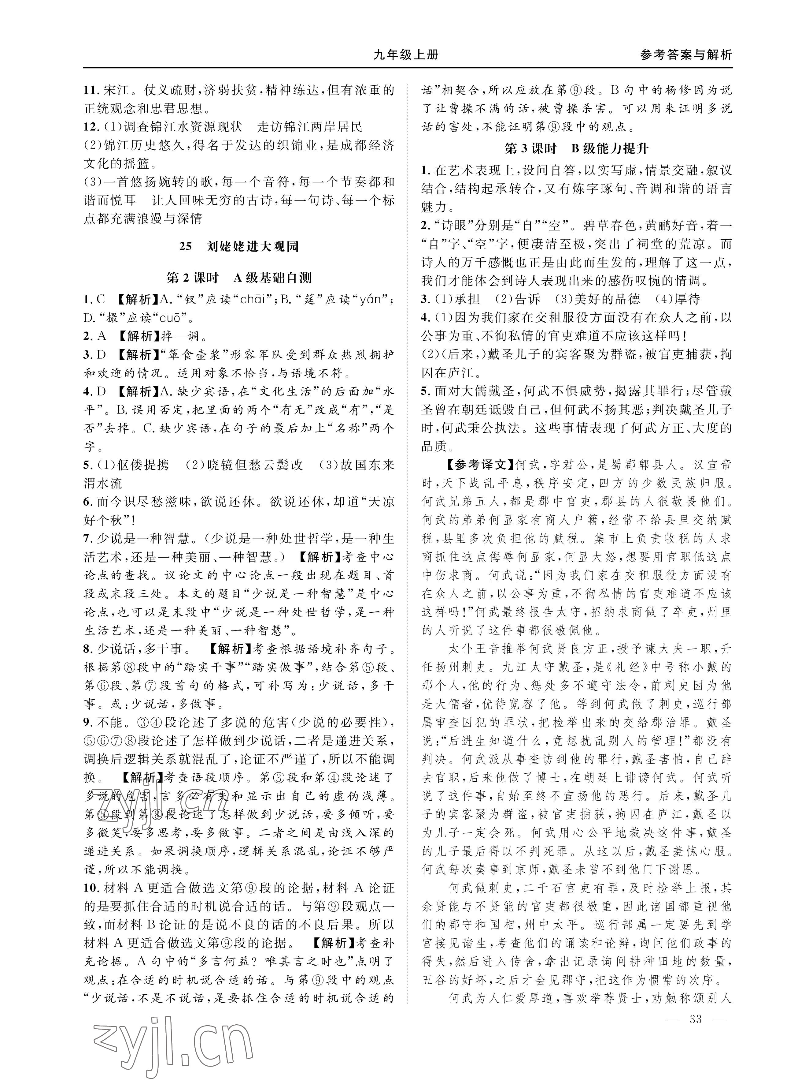 《2022年名校课课练九年级语文上册人教版成都专版》