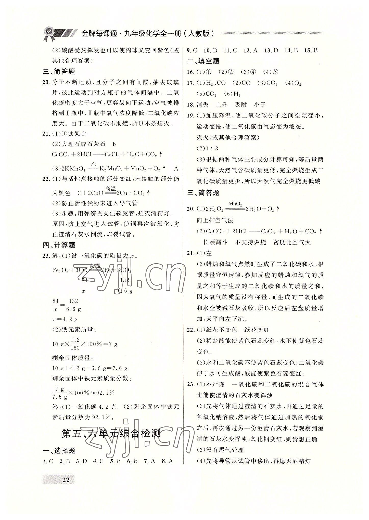 注:目前有些书本章节名称可能整理的还不是很完善,但都是按照顺序排列的,请同学们按照顺序仔细查找。练习册 2022年点石成金金牌每课通九年级化学全一册人教版大连专版 答案主要是用来给同学们做完题方便对答案用的,请勿直接抄袭。