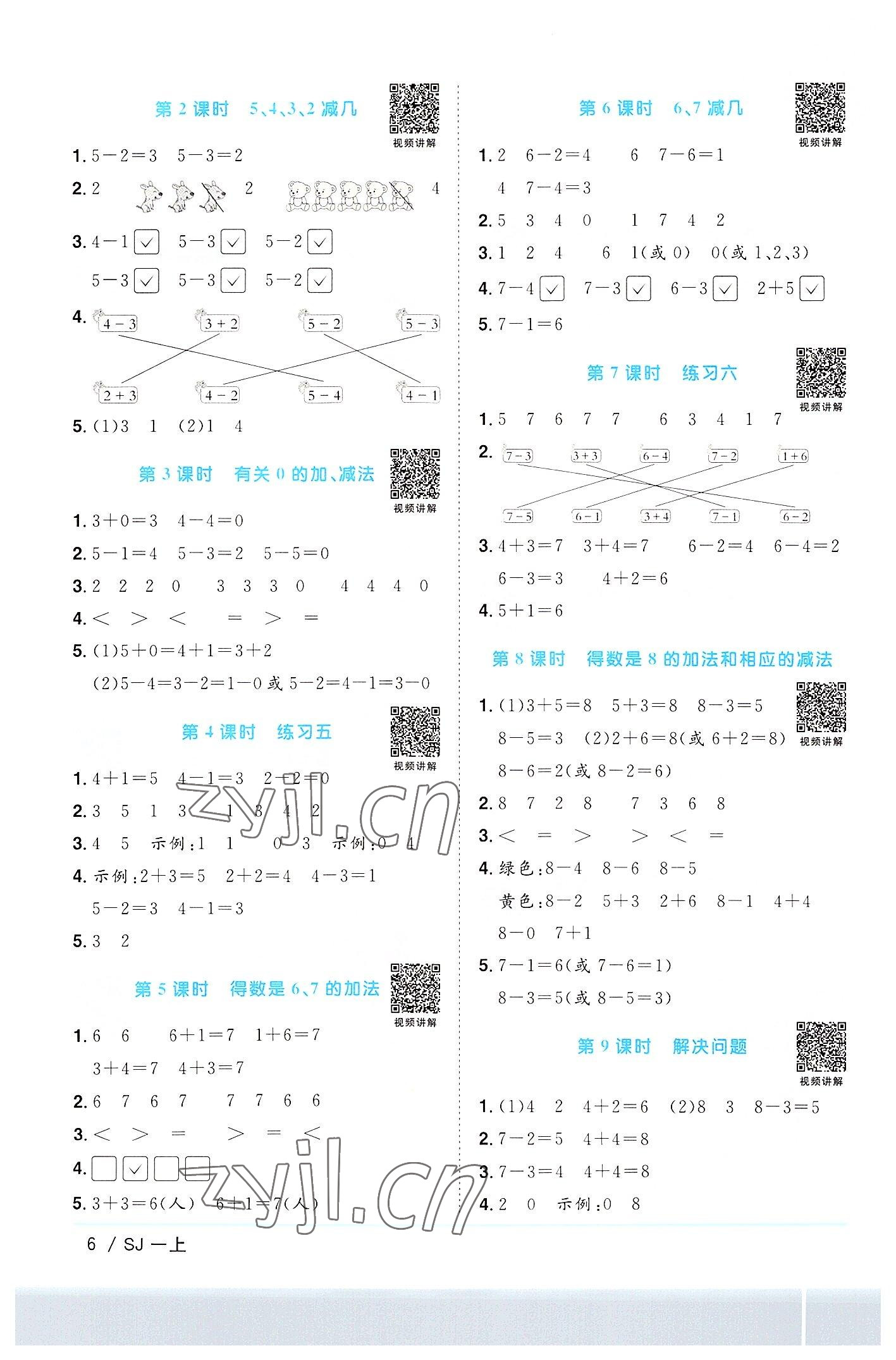 注:目前有些书本章节名称可能整理的还不是很完善,但都是按照顺序排列的,请同学们按照顺序仔细查找。练习册 2022年阳光同学课时优化作业一年级数学上册苏教版 答案主要是用来给同学们做完题方便对答案用的,请勿直接抄袭。