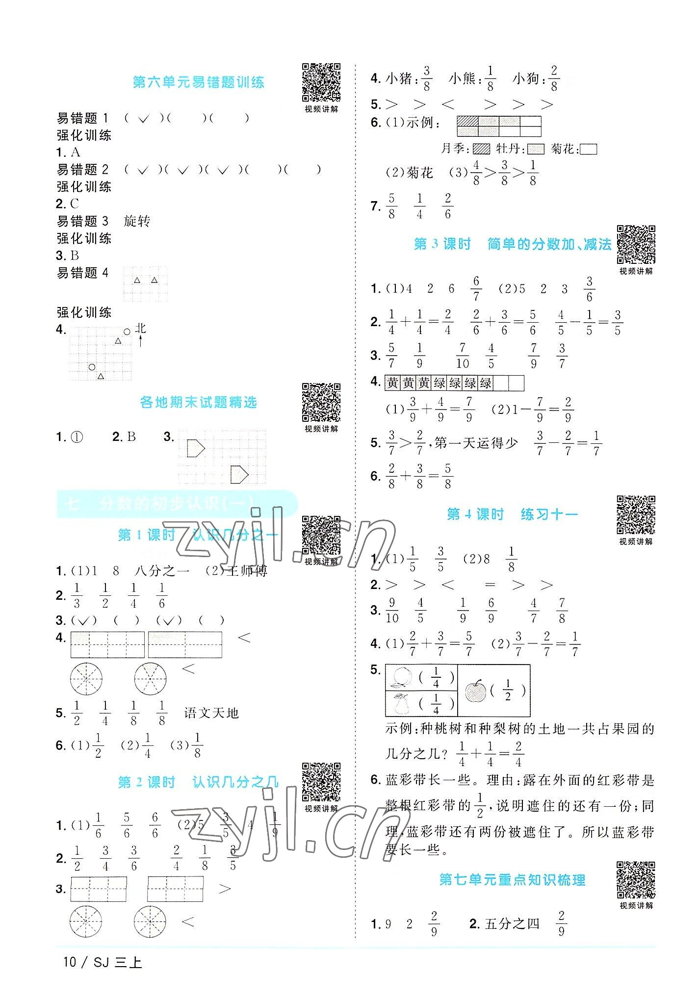 注:目前有些书本章节名称可能整理的还不是很完善,但都是按照顺序排列的,请同学们按照顺序仔细查找。练习册 2022年阳光同学课时优化作业三年级数学上册苏教版 答案主要是用来给同学们做完题方便对答案用的,请勿直接抄袭。