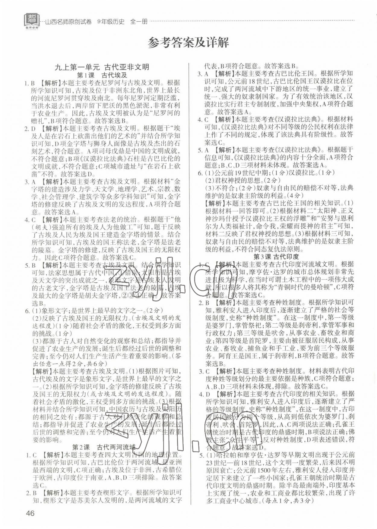 注:目前有些书本章节名称可能整理的还不是很完善,但都是按照顺序排列的,请同学们按照顺序仔细查找。练习册 2022年山西名师原创试卷九年级历史全一册人教版 答案主要是用来给同学们做完题方便对答案用的,请勿直接抄袭。