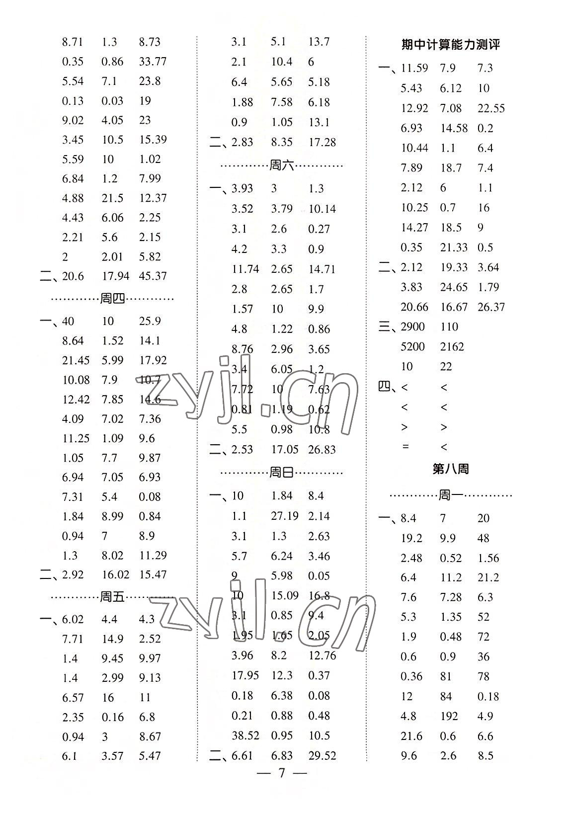 2022年经纶学典口算达人五年级数学上册苏教版