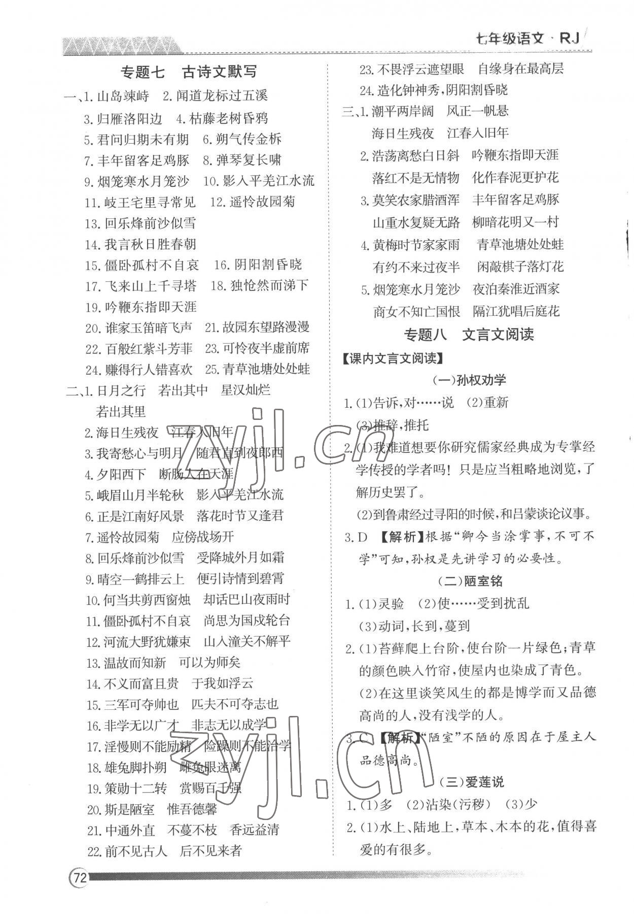 注:目前有些书本章节名称可能整理的还不是很完善,但都是按照顺序排列的,请同学们按照顺序仔细查找。练习册 2022年鑫辉图书假期自主学习七年级语文 答案主要是用来给同学们做完题方便对答案用的,请勿直接抄袭。