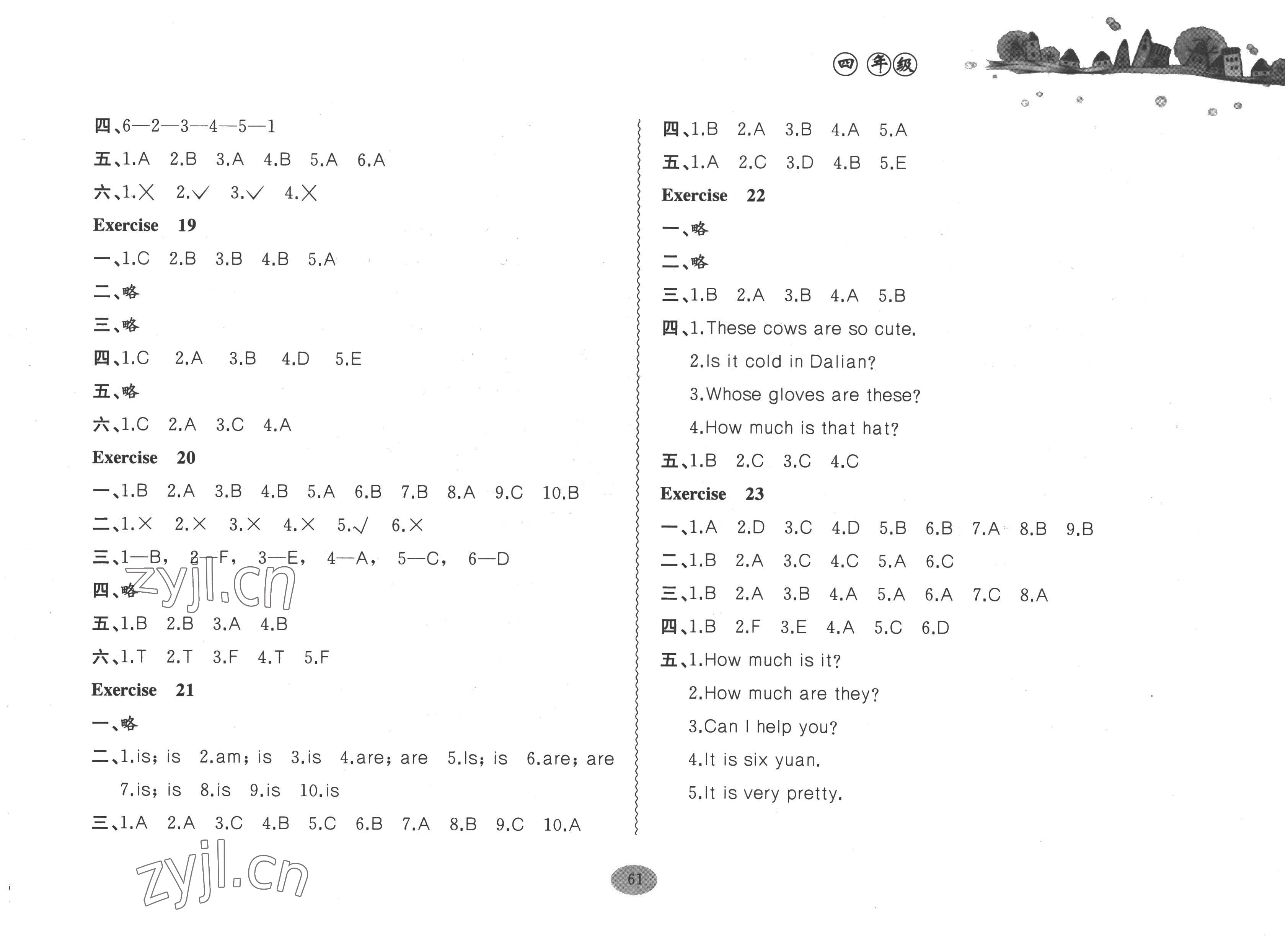 注:目前有些书本章节名称可能整理的还不是很完善,但都是按照顺序排列的,请同学们按照顺序仔细查找。练习册 2022年暑假作业四年级英语人教版合肥工业大学出版社 答案主要是用来给同学们做完题方便对答案用的,请勿直接抄袭。