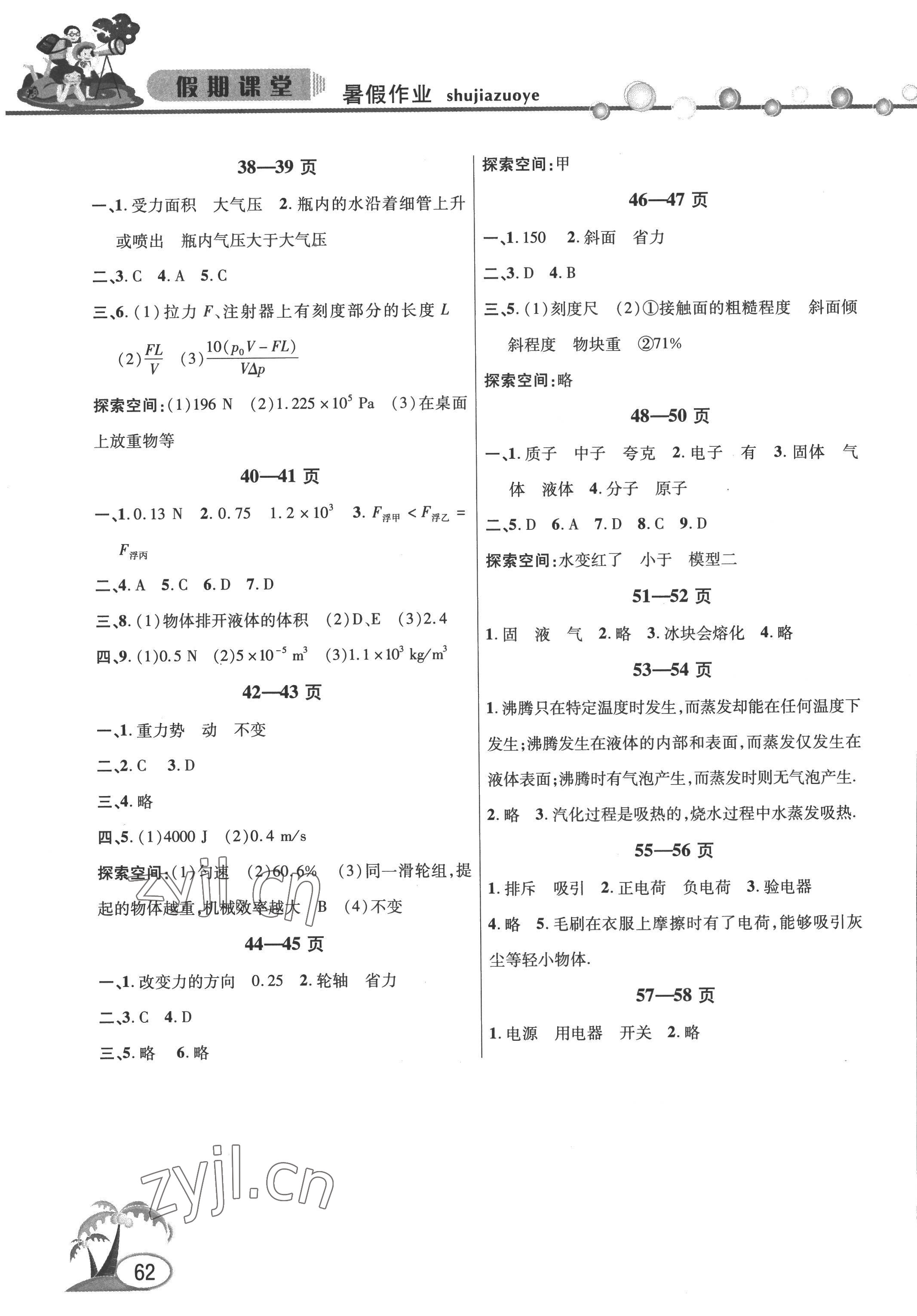 2022年君杰文化假期课堂暑假作业安徽人民出版社八年级物理下册沪科版