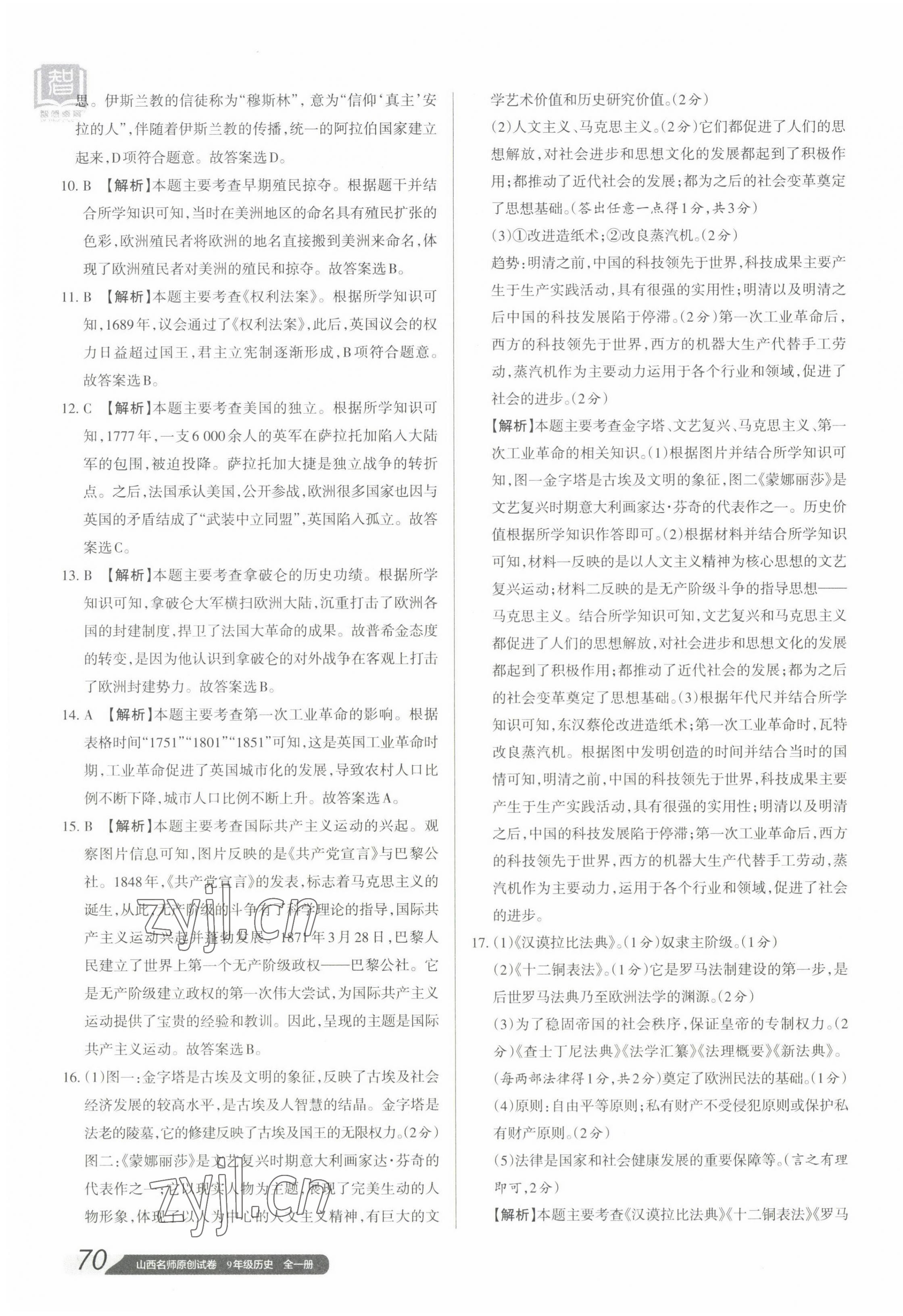 注:目前有些书本章节名称可能整理的还不是很完善,但都是按照顺序排列的,请同学们按照顺序仔细查找。练习册 2022年山西名师原创试卷九年级历史全一册人教版 答案主要是用来给同学们做完题方便对答案用的,请勿直接抄袭。