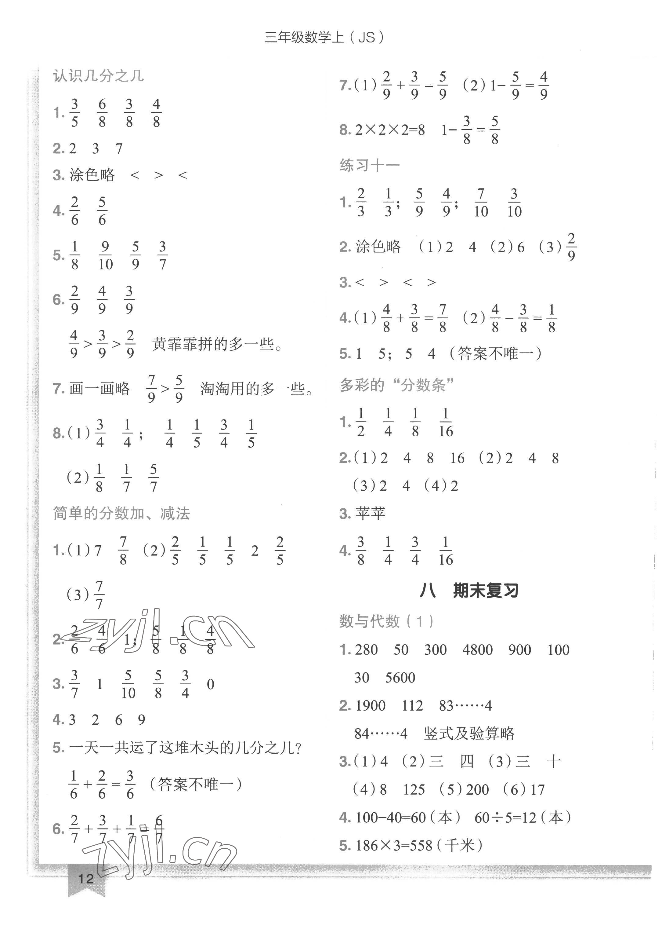注:目前有些书本章节名称可能整理的还不是很完善,但都是按照顺序排列的,请同学们按照顺序仔细查找。练习册 2022年黄冈小状元作业本三年级数学上册江苏版 答案主要是用来给同学们做完题方便对答案用的,请勿直接抄袭。
