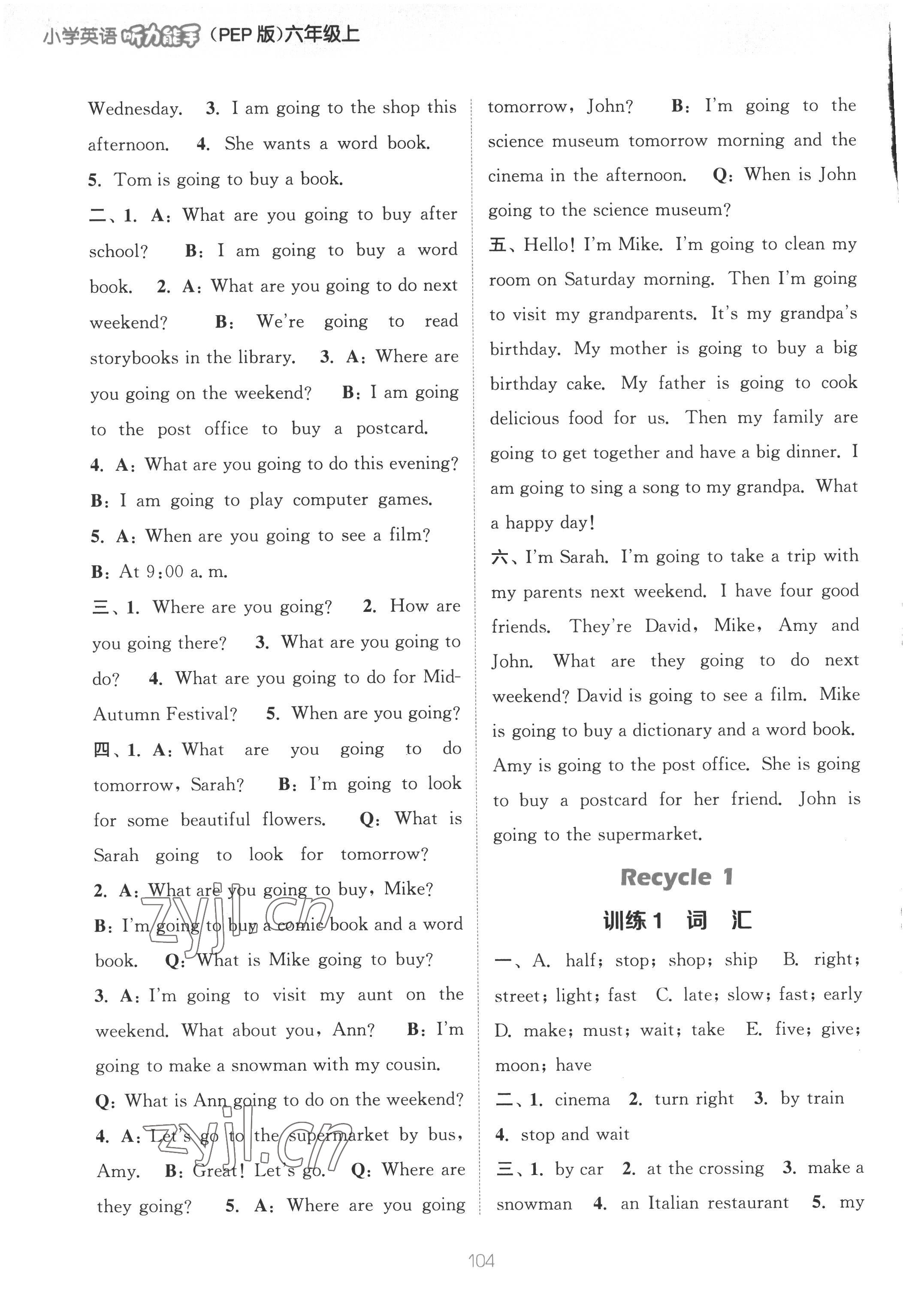 注:目前有些书本章节名称可能整理的还不是很完善,但都是按照顺序排列的,请同学们按照顺序仔细查找。练习册 2022年通城学典小学英语听力能手六年级上册人教PEP版 答案主要是用来给同学们做完题方便对答案用的,请勿直接抄袭。