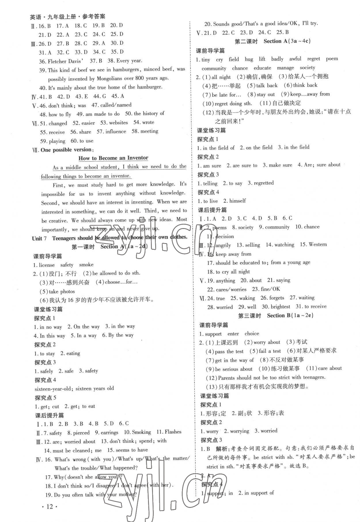 注:目前有些书本章节名称可能整理的还不是很完善,但都是按照顺序排列的,请同学们按照顺序仔细查找。练习册 2022年中考123全程导练九年级英语上册 答案主要是用来给同学们做完题方便对答案用的,请勿直接抄袭。