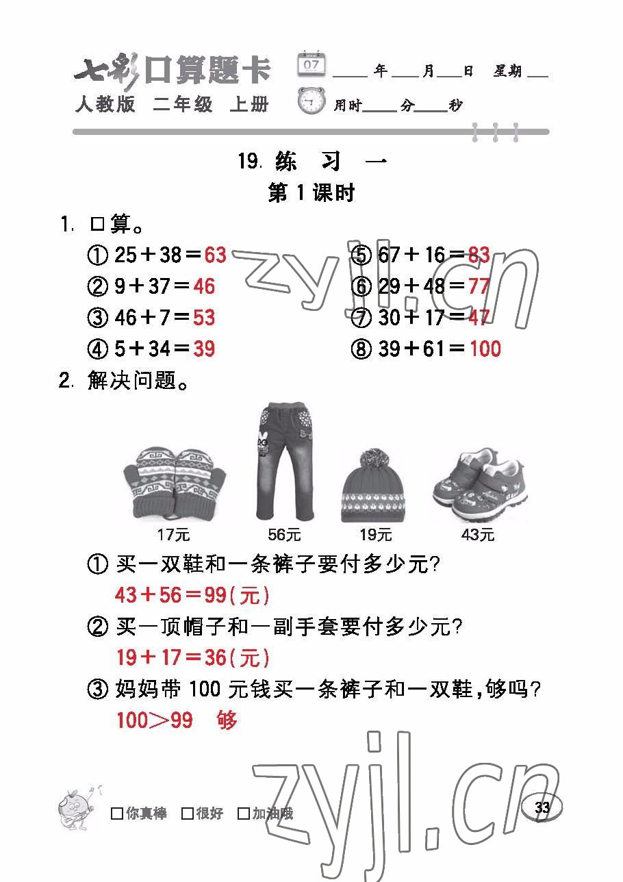 注:目前有些书本章节名称可能整理的还不是很完善,但都是按照顺序排列的,请同学们按照顺序仔细查找。练习册 2022年七彩口算题卡二年级数学上册人教版 答案主要是用来给同学们做完题方便对答案用的,请勿直接抄袭。